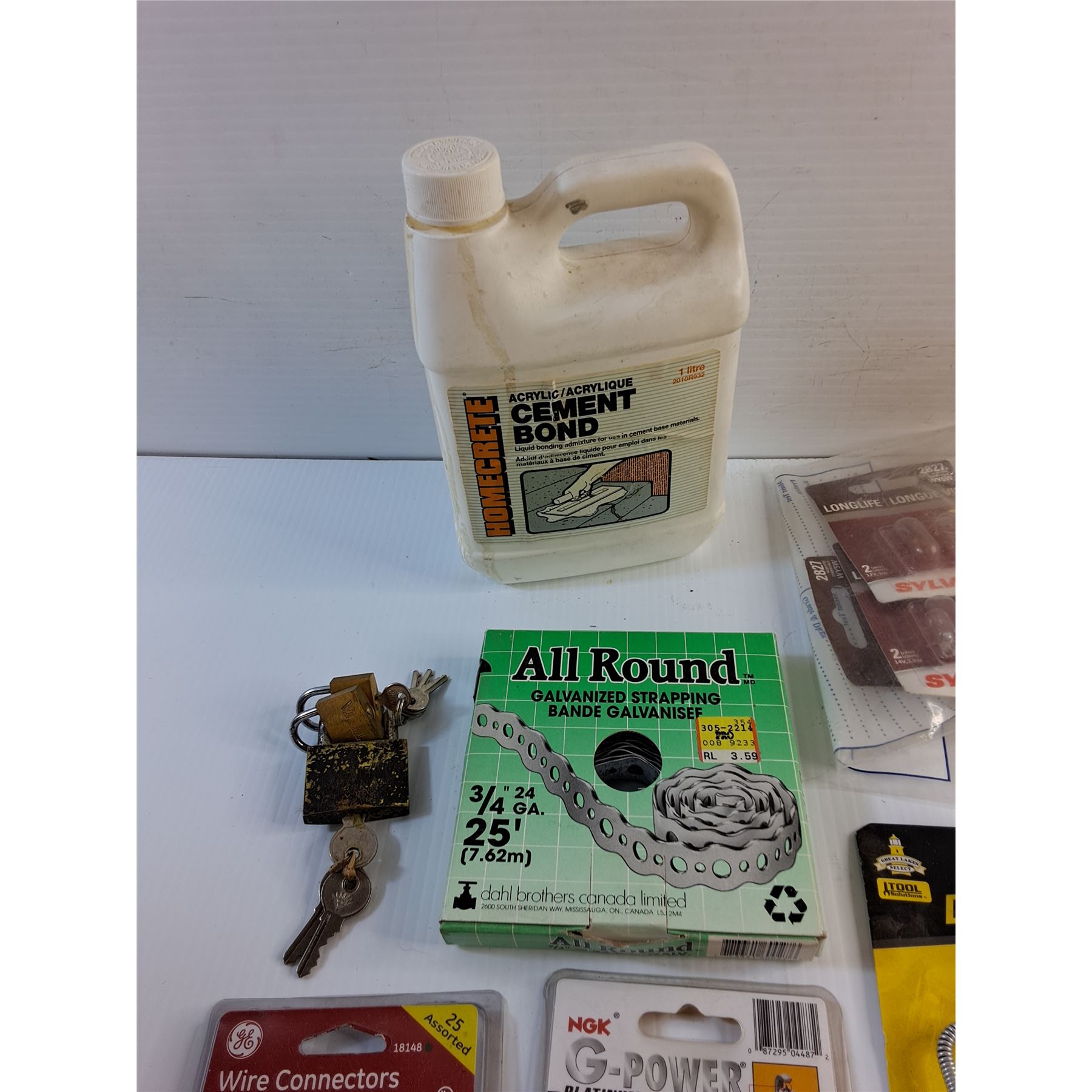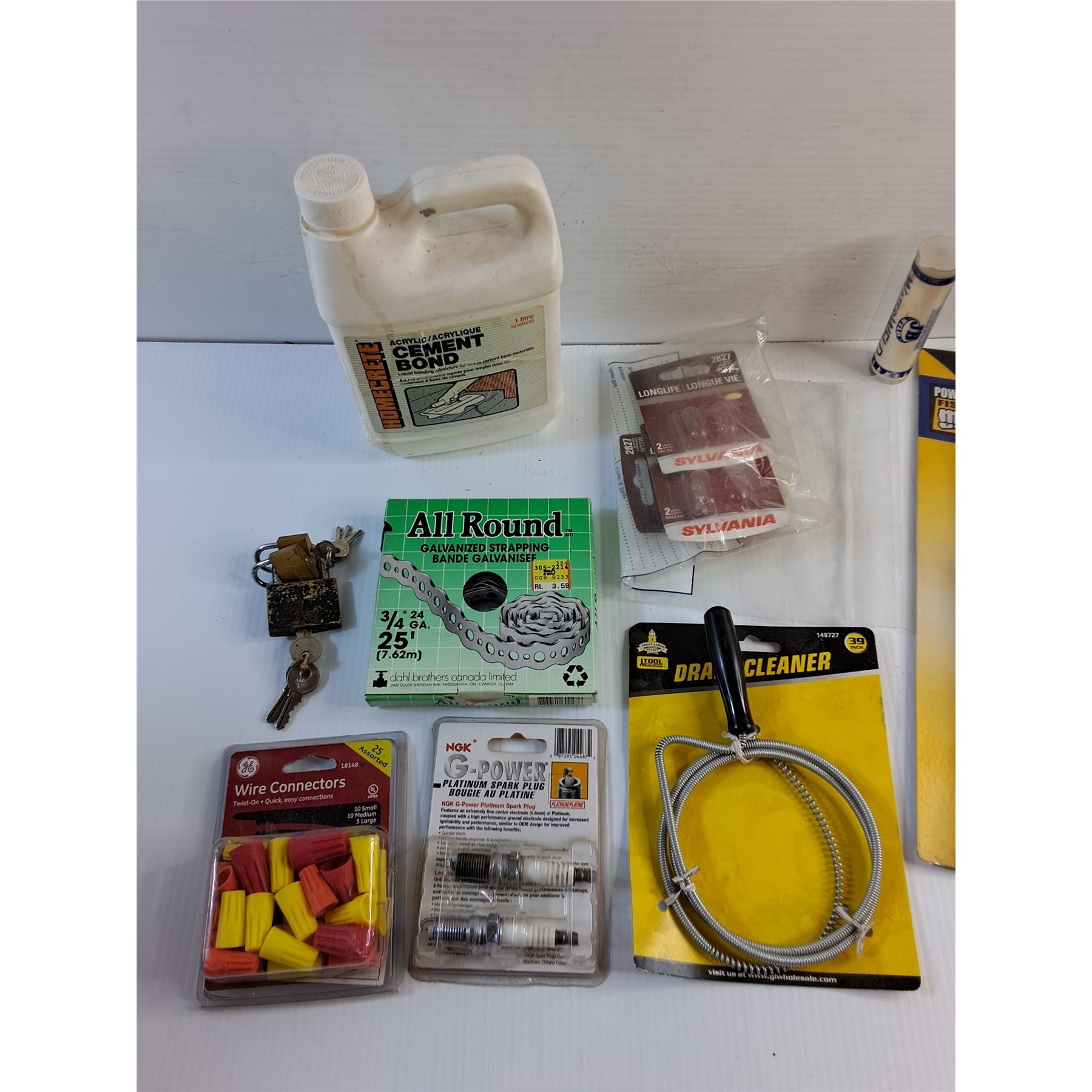 Cement Bond, Galvanized Strapping, Wire Connectors, Drain Cleaner, Circuit Tester and Misc