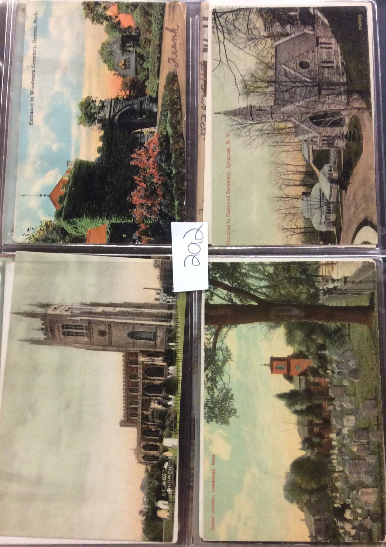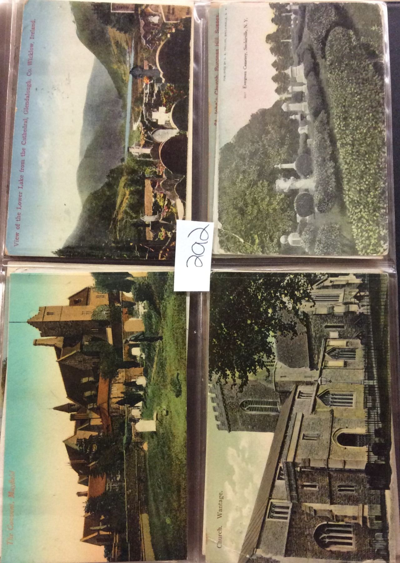 Over 165 postcards of cemetaries. Many churches too. Early.