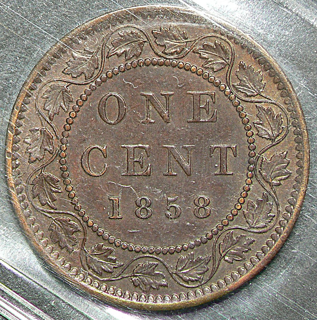 Cent 1858, graded ICCS EF-40. Medal alignment with an even brown color.