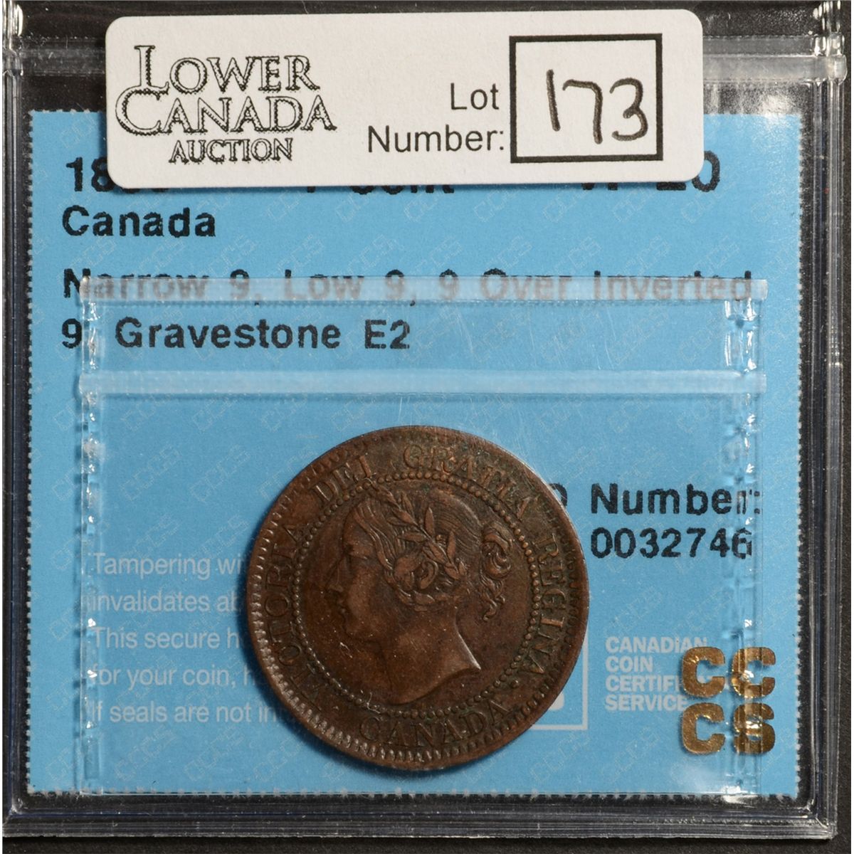 Cent 1859, CCCS VF-20; Narrow 9, Low 9, 9 Over Inverted 9, Gravestone E2. Very hard to find in any condition.