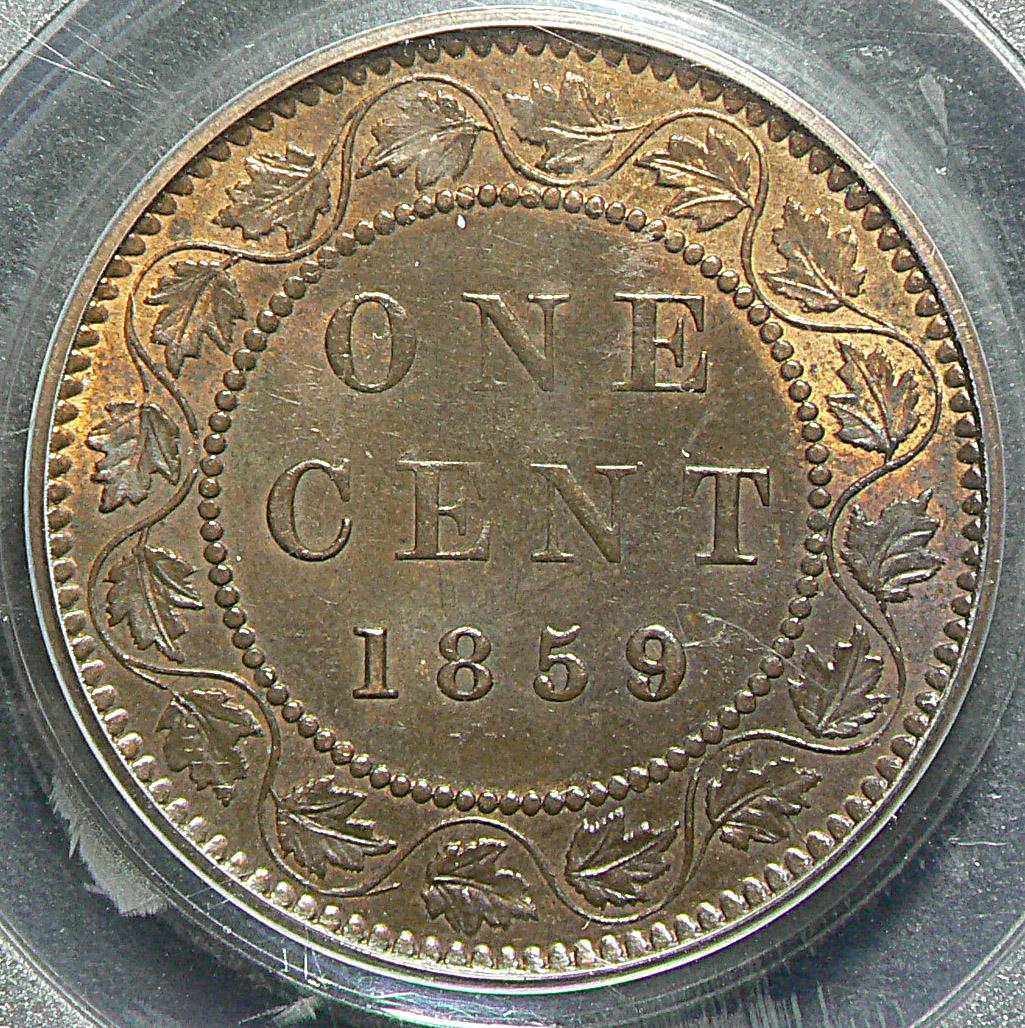 Cent 1859, graded PCGS MS-64; Red & Brown, Wide 9 Over 8, Medal.