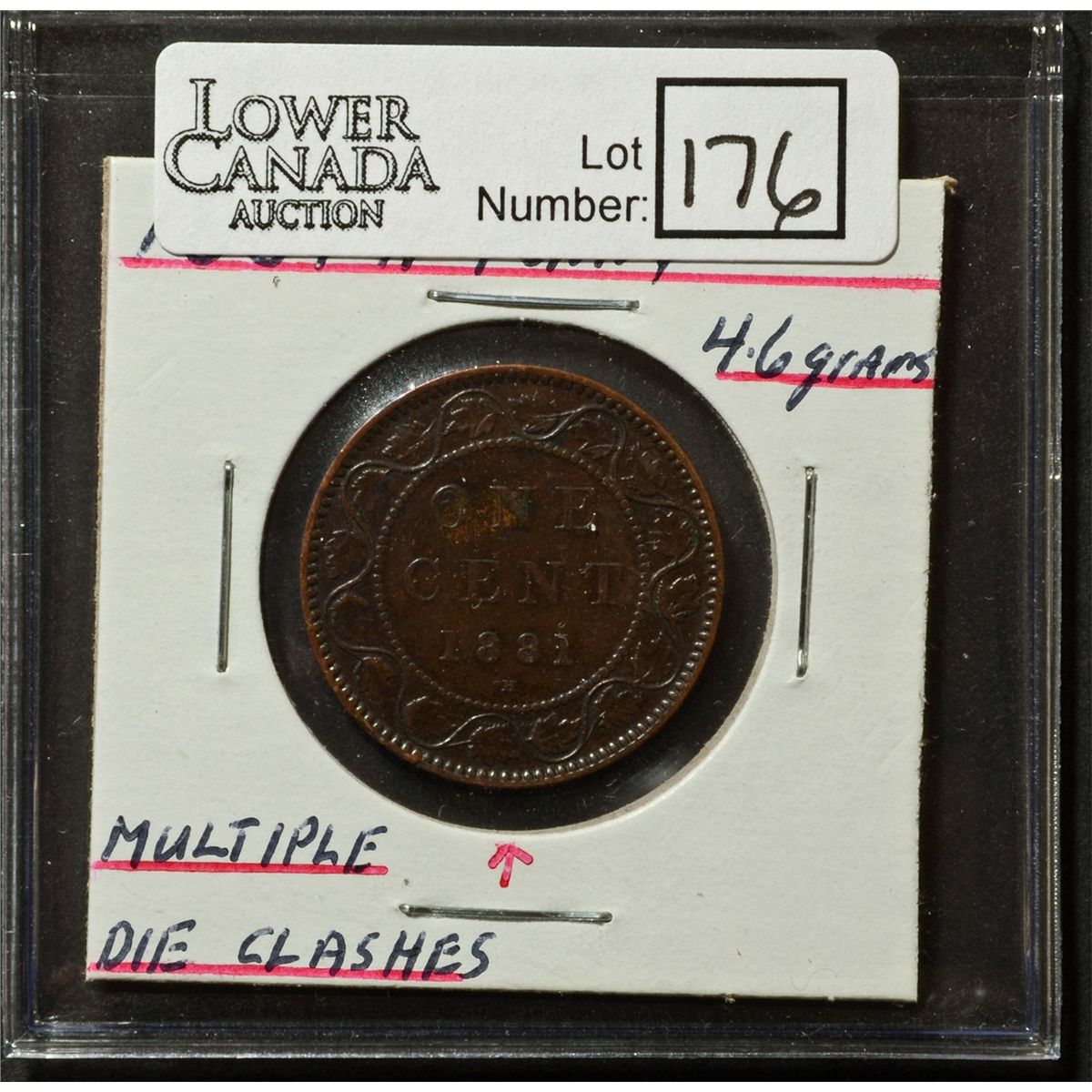 Cent 1881H, Later Die State showing multiple Die Clashes, GR-91, F-15.