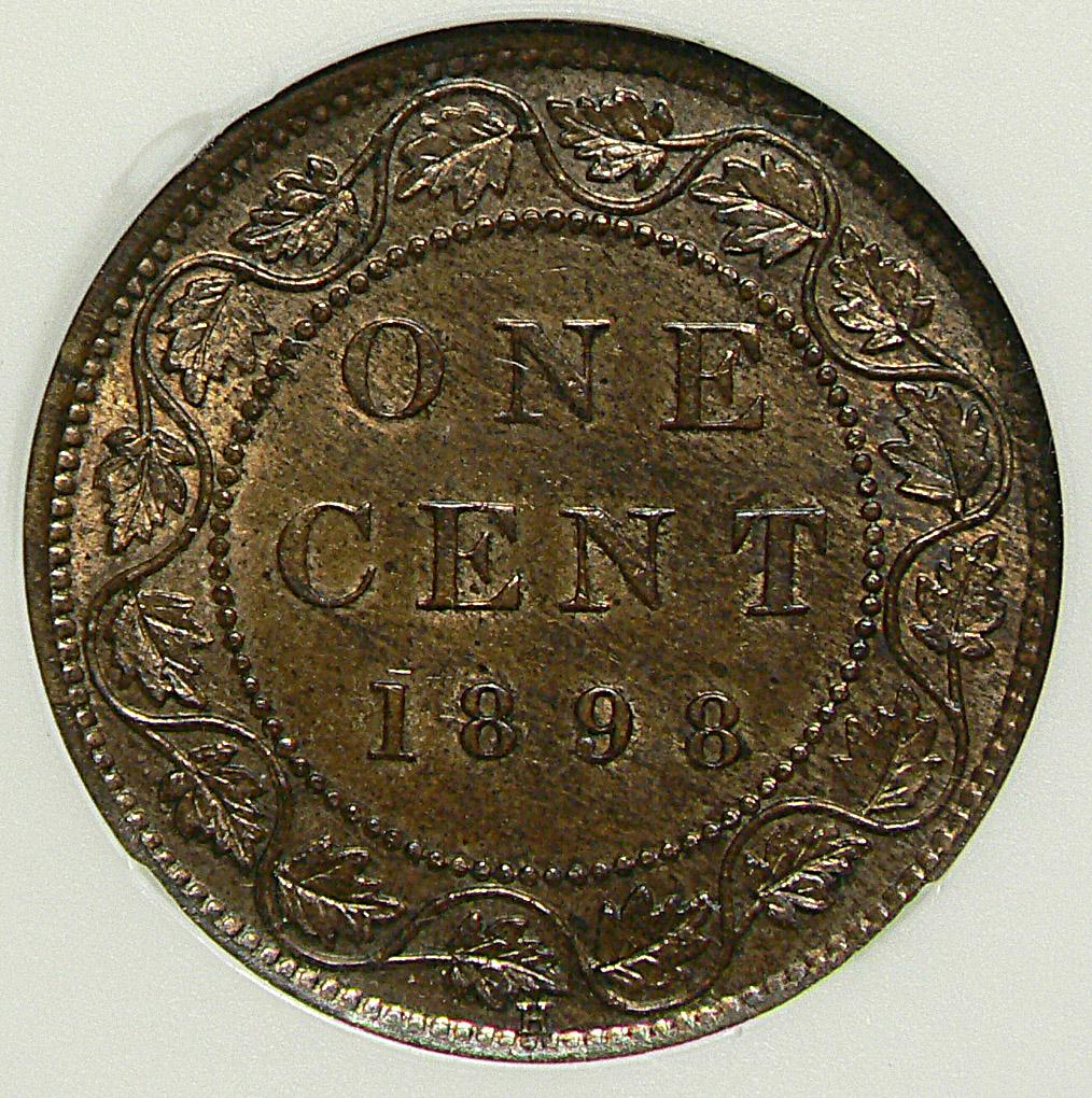 Cent 1898H, graded ANACS MS-63; Red & Brown.