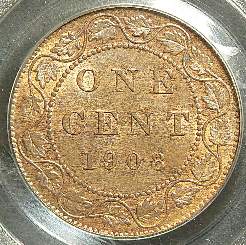 Cent 1908, graded PCGS MS-65; Red & Brown.