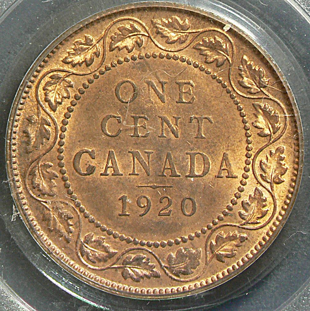 Cent 1920, graded PCGS MS-65; Red & Brown, Large Cent.