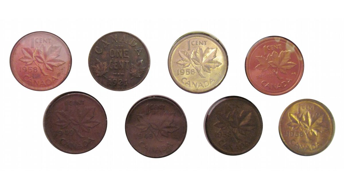 Cent 1921 EF-40, cent 1958 x 4 MS-62/63, cent 1992 Proof, cent 1948 A To Denticle Small Denticle & 1949 A To Denticle. Lot of 8 coins.