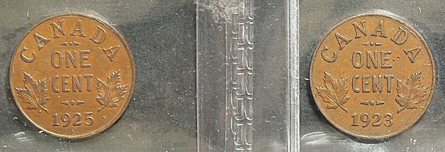 Cent 1923, graded ICCS VF-30 & 1925, graded ICCS EF-45. Lot of 2 key date coins.