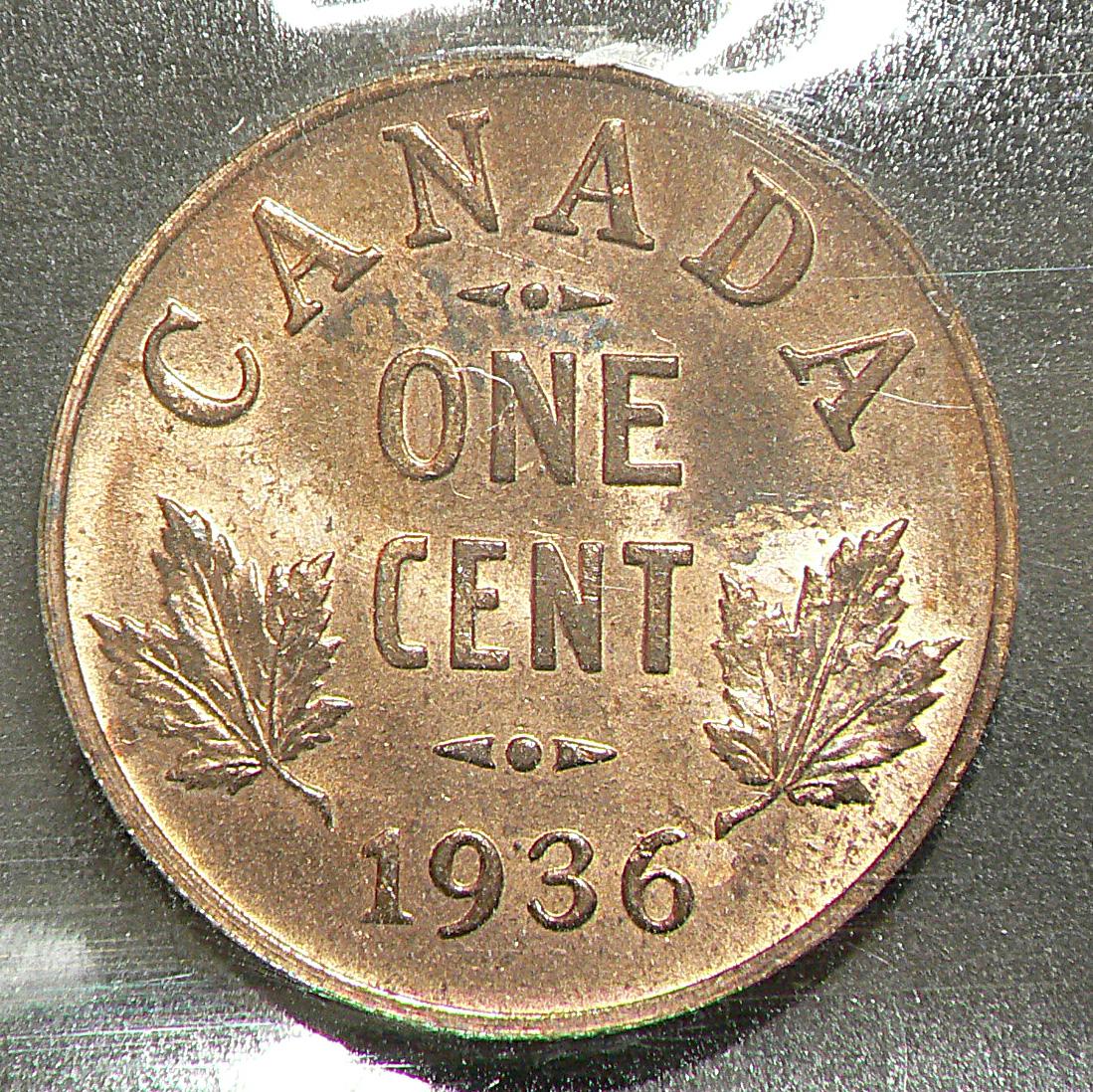 Cent 1936, graded CCCS MS-63; Red