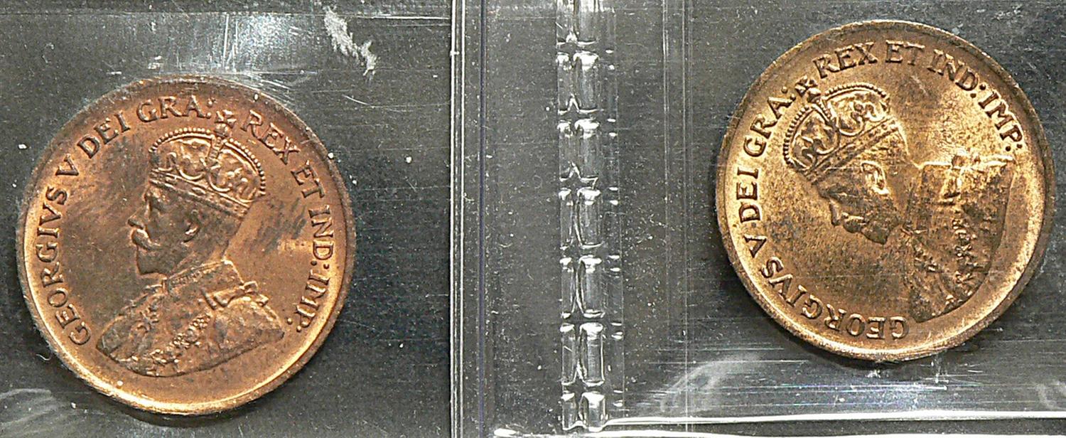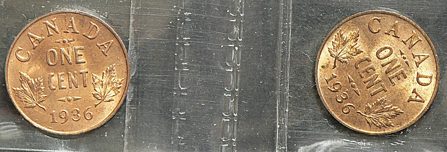 Cent 1936, graded ICCS MS-63; Red & 1936, graded ICCS MS-64; Red & Brown. Lot of 2 coins.