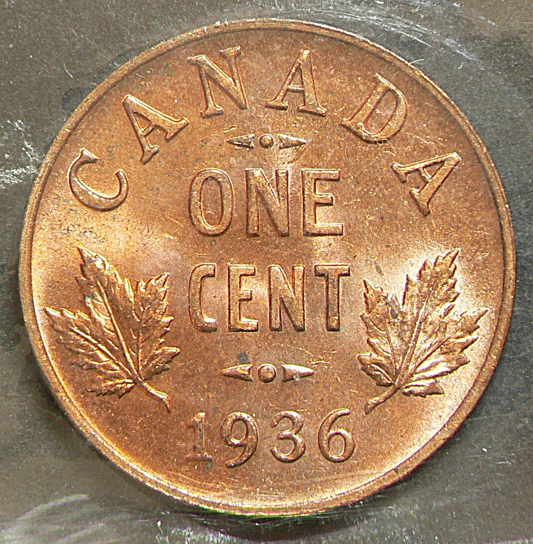 Cent 1936, graded ICCS MS-64; Red, Pittman Sale.