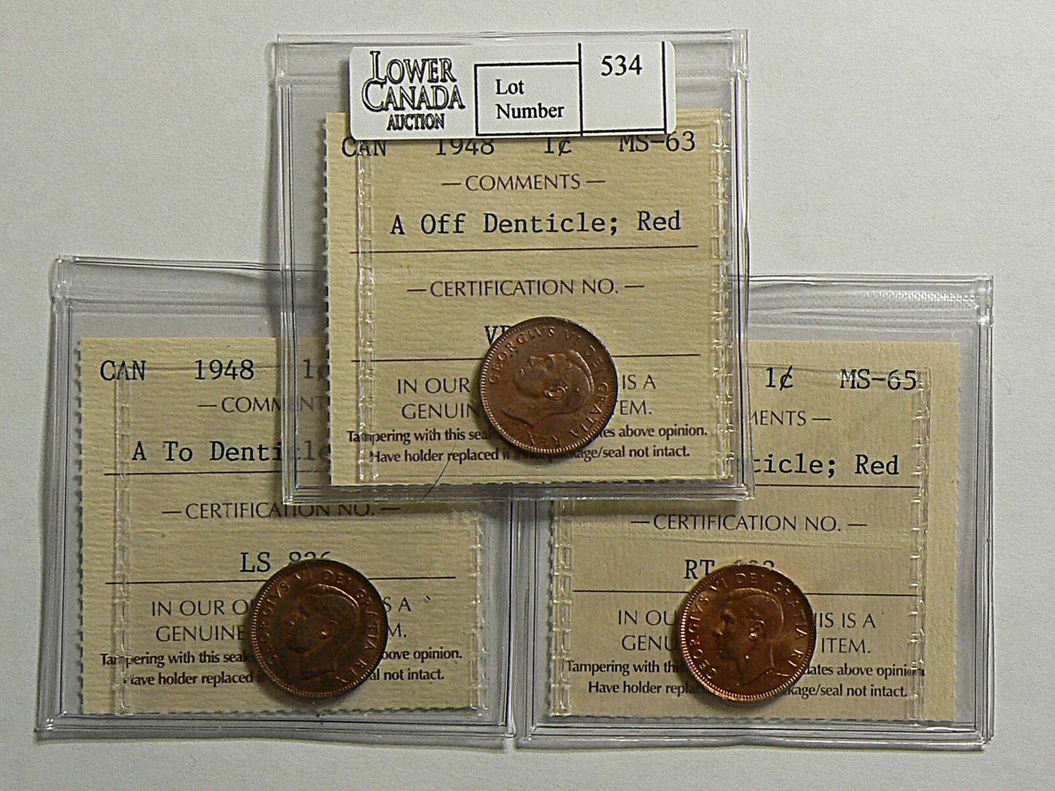 Cent 1948, graded ICCS MS-63; Red, A Off Denticle, 1948, graded ICCS MS-63; Red & 1949, graded ICCS