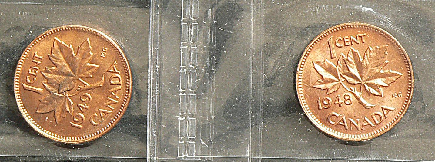 Cent 1948, graded ICCS MS-64; Red, A Off Denticle & 1949, graded ICCS MS-64; Red, A Off Denticle