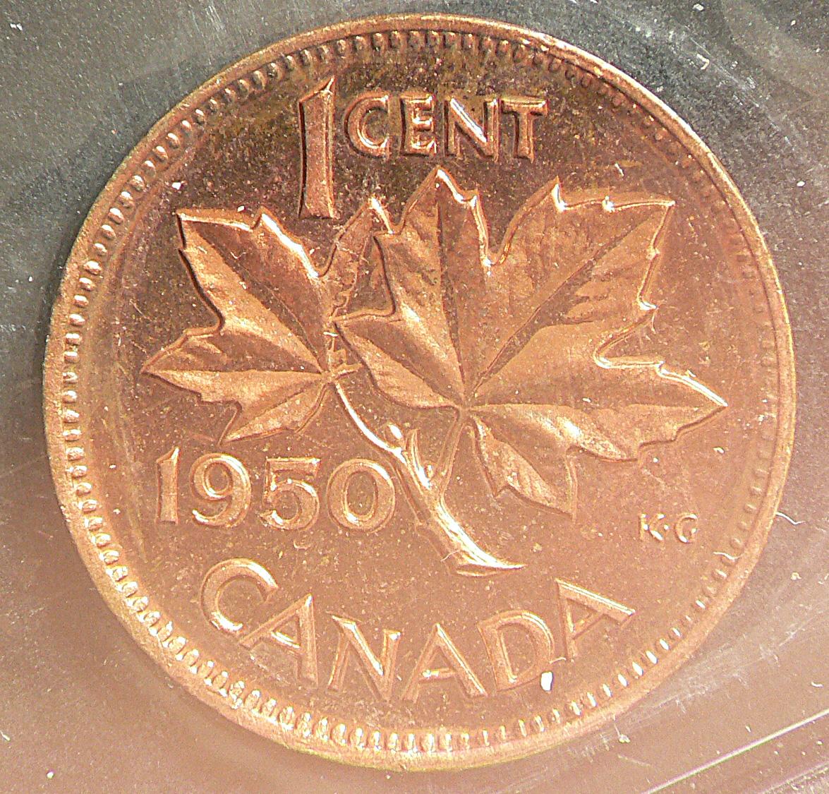 Cent 1950, graded ICCS SP-65; Red. Scarce specimen.
