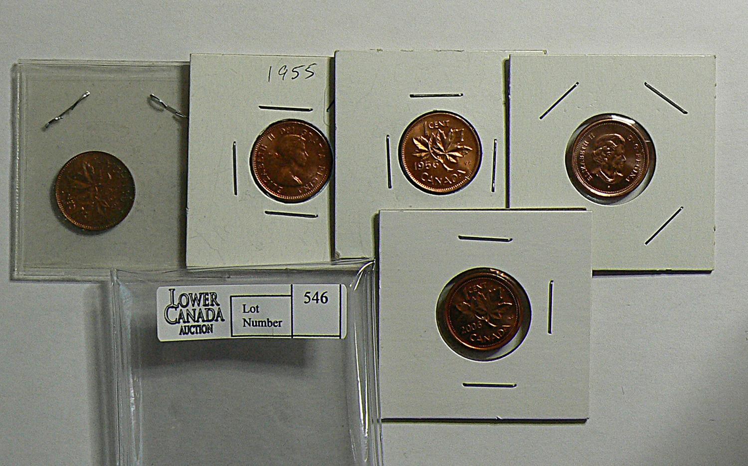 Cent 1953 NSF, 1955 SF, 1956, 2006P x 2, grade MS; Red. Lot of 5 coins.