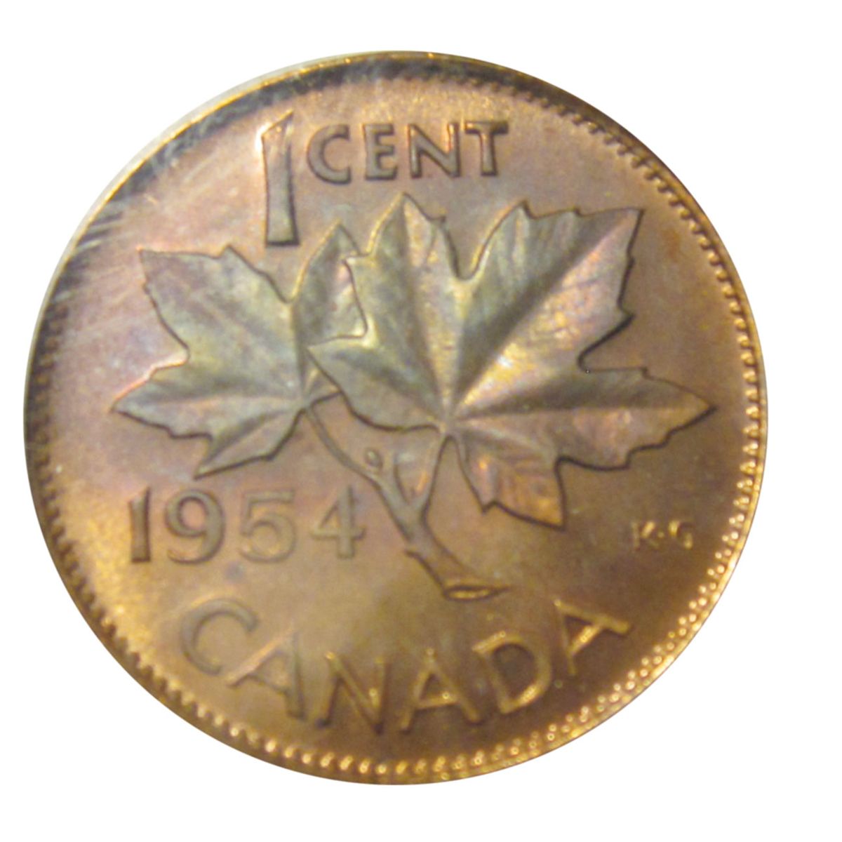 Cent 1954 PCGS PL-66; Red & Brown, No Shoulder Strap.