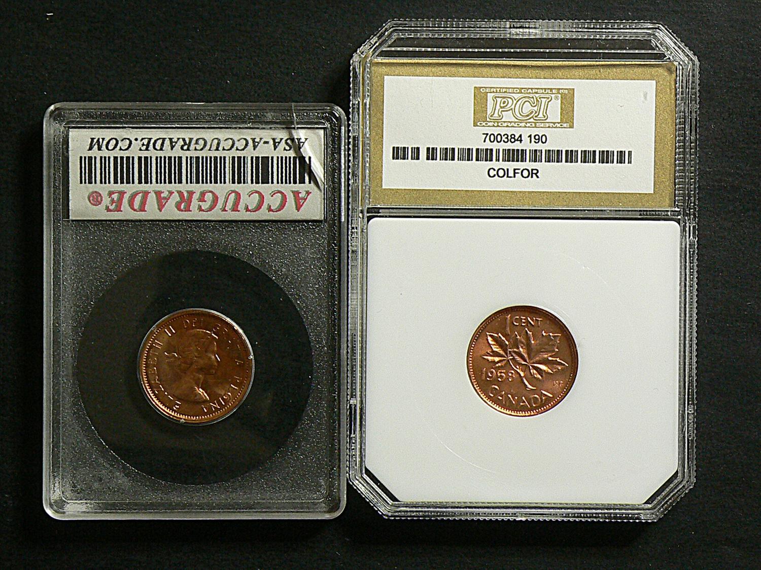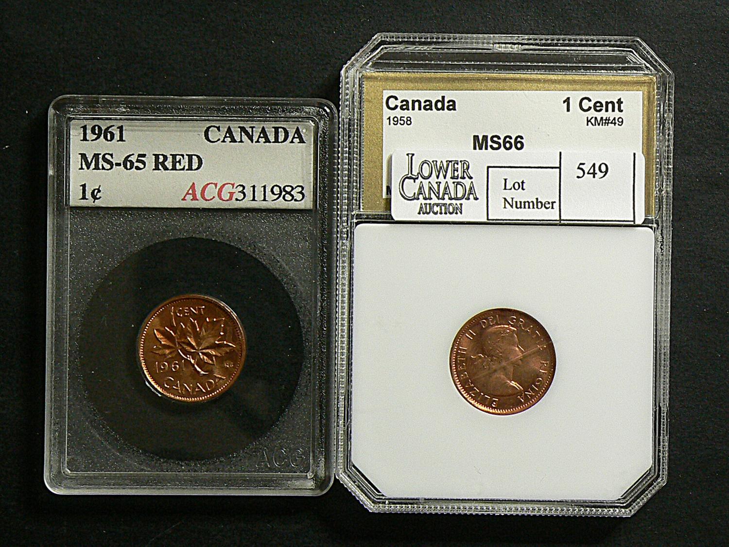 Cent 1958, graded PCI MS-66; Red & 1961, graded ACG MS-65; Red. Lot of 2 coins.