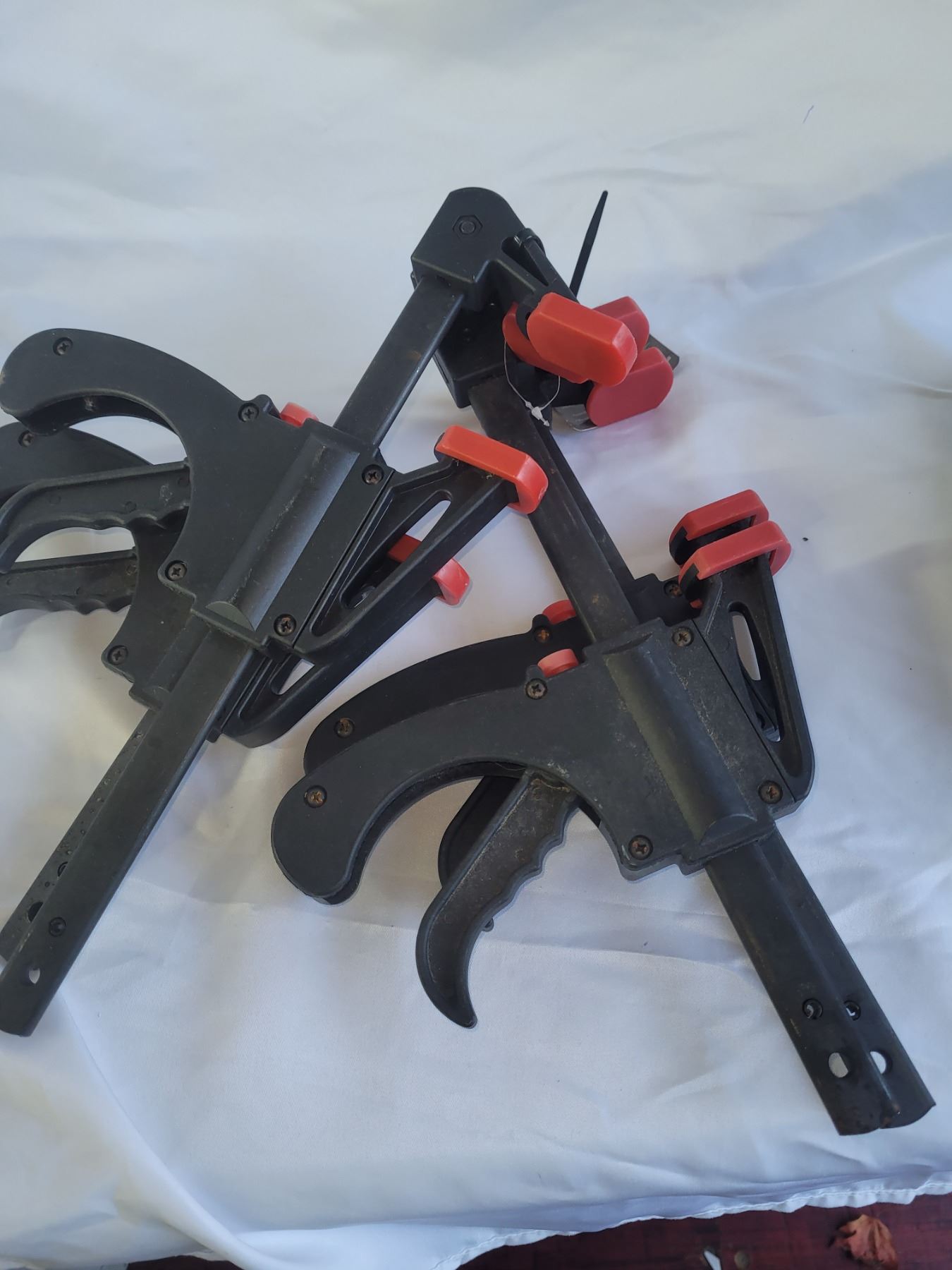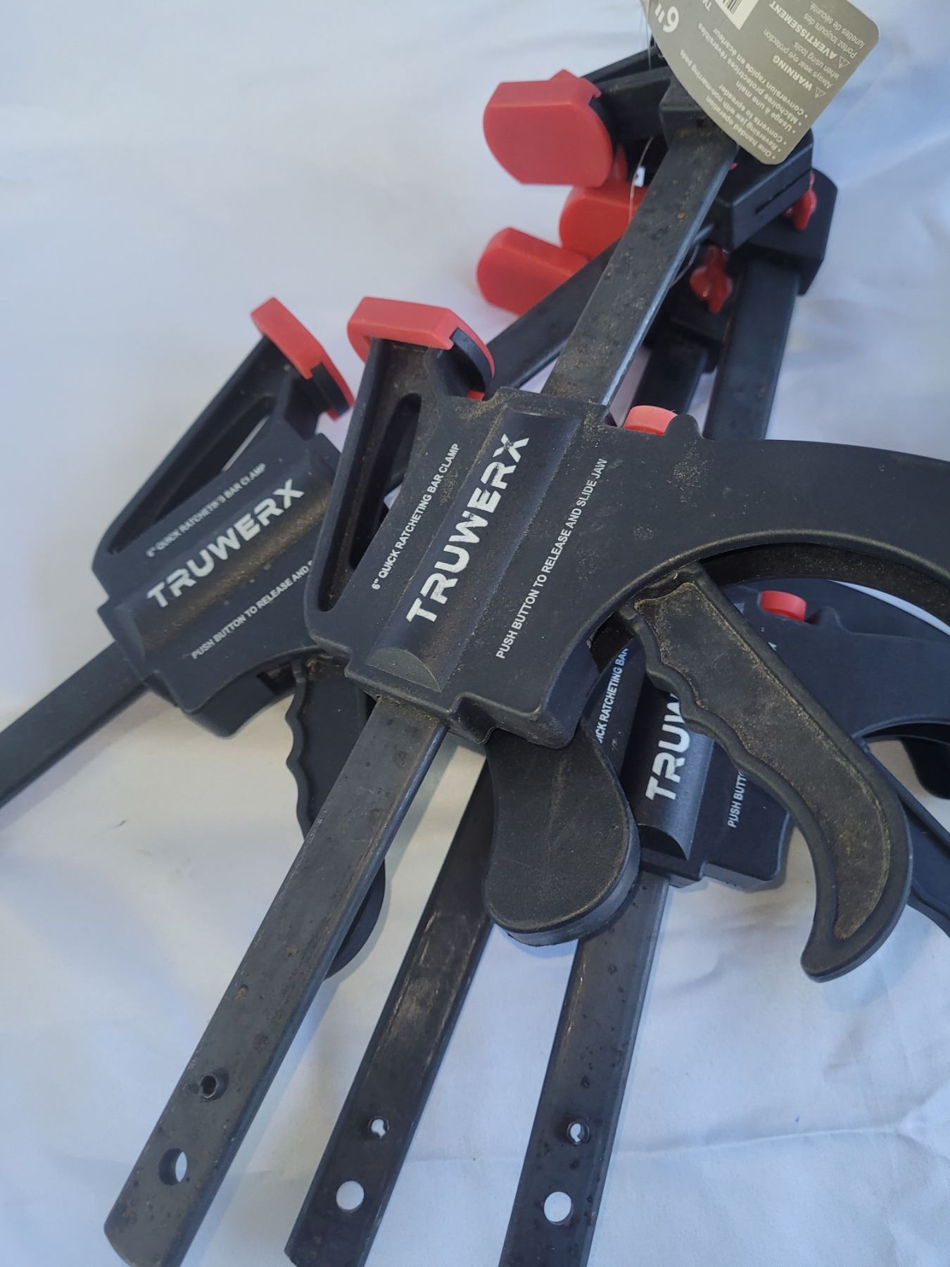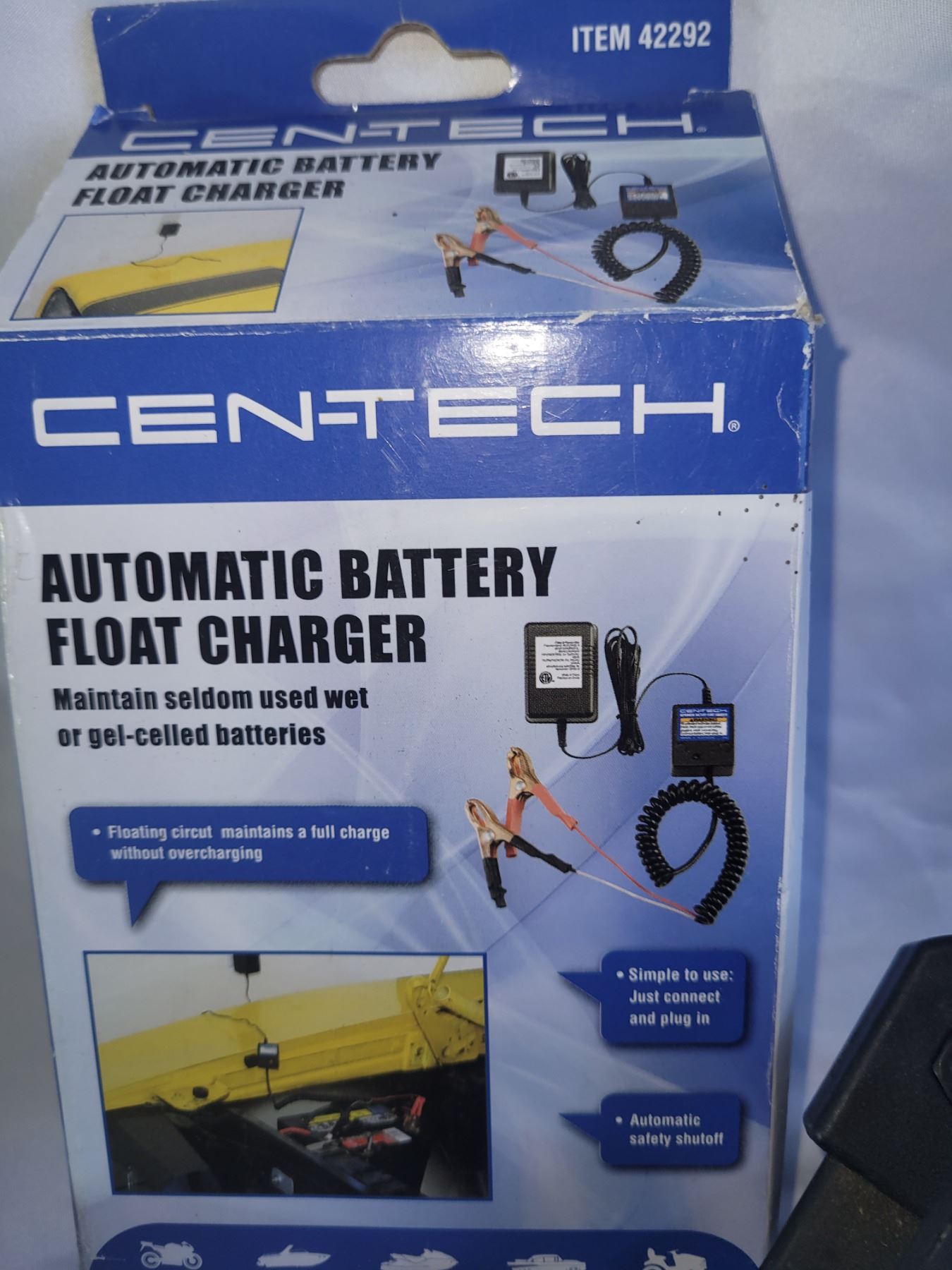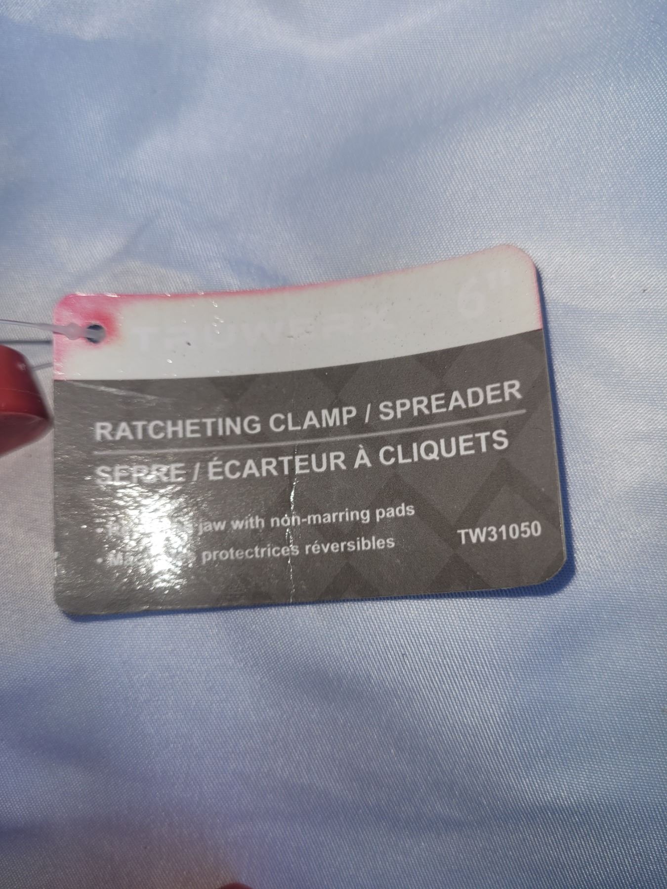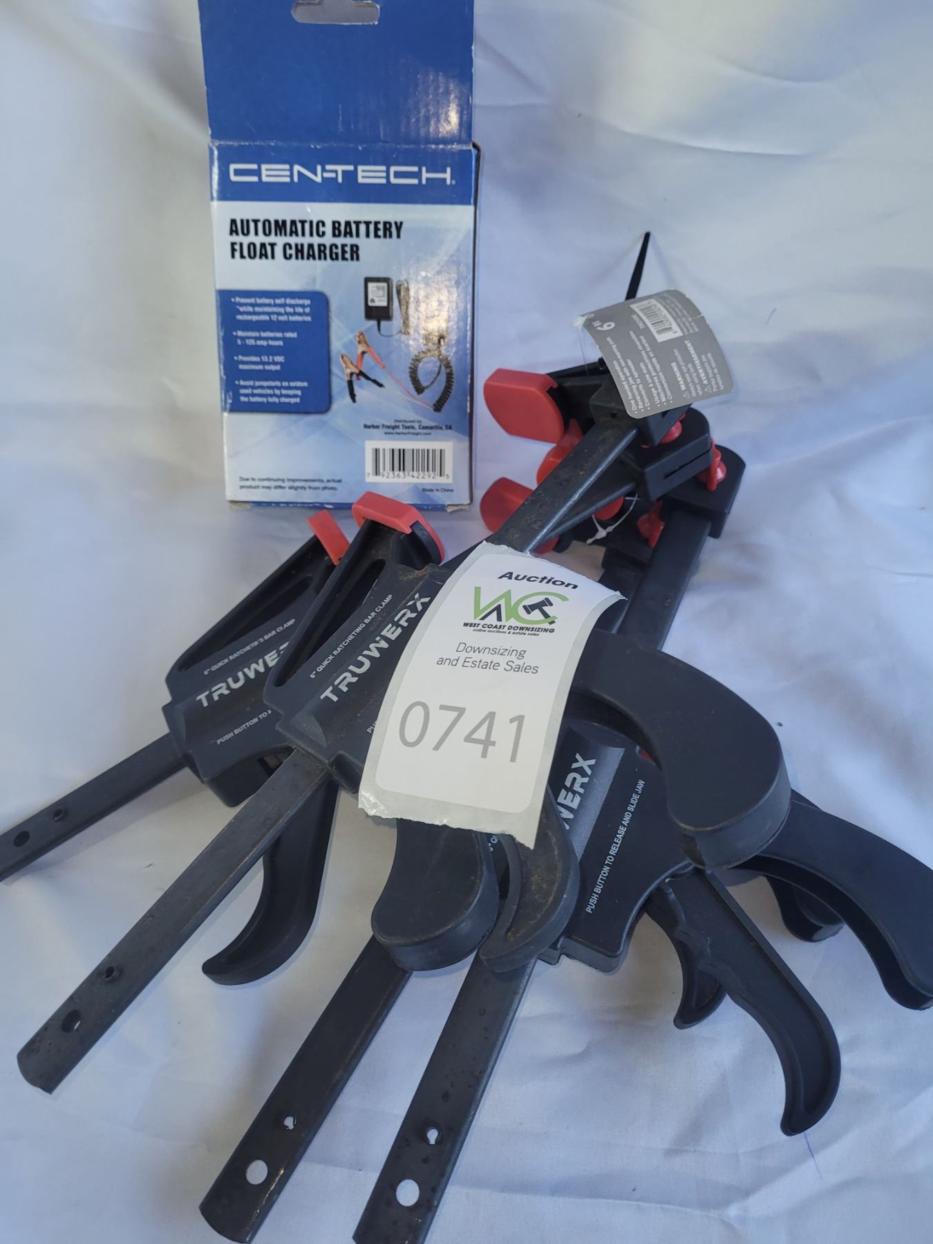 Centech auto battery float charger and Truwerk ratchet clamp spreader. Pickup at 9 am
