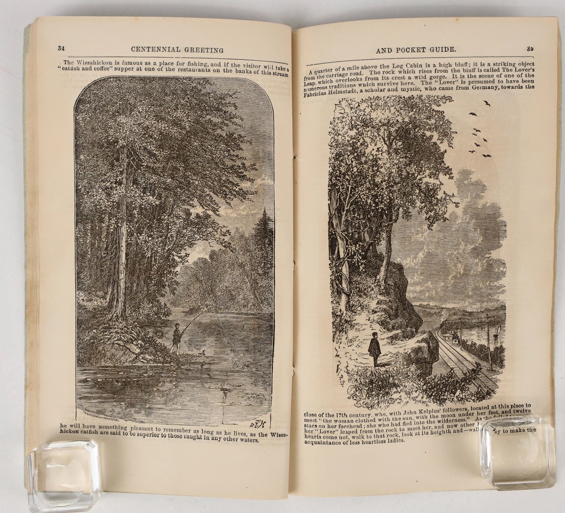 Pocket Guide for the Centennial Visitor. 72 pages; 4 x 7 inches. Printed by J. W. Frazier, 33 South Third Street; and sponsored by Willimantic Spool Cotton (The Best Cotton Made). Pamphlet is in extremely good condition, easily readable.