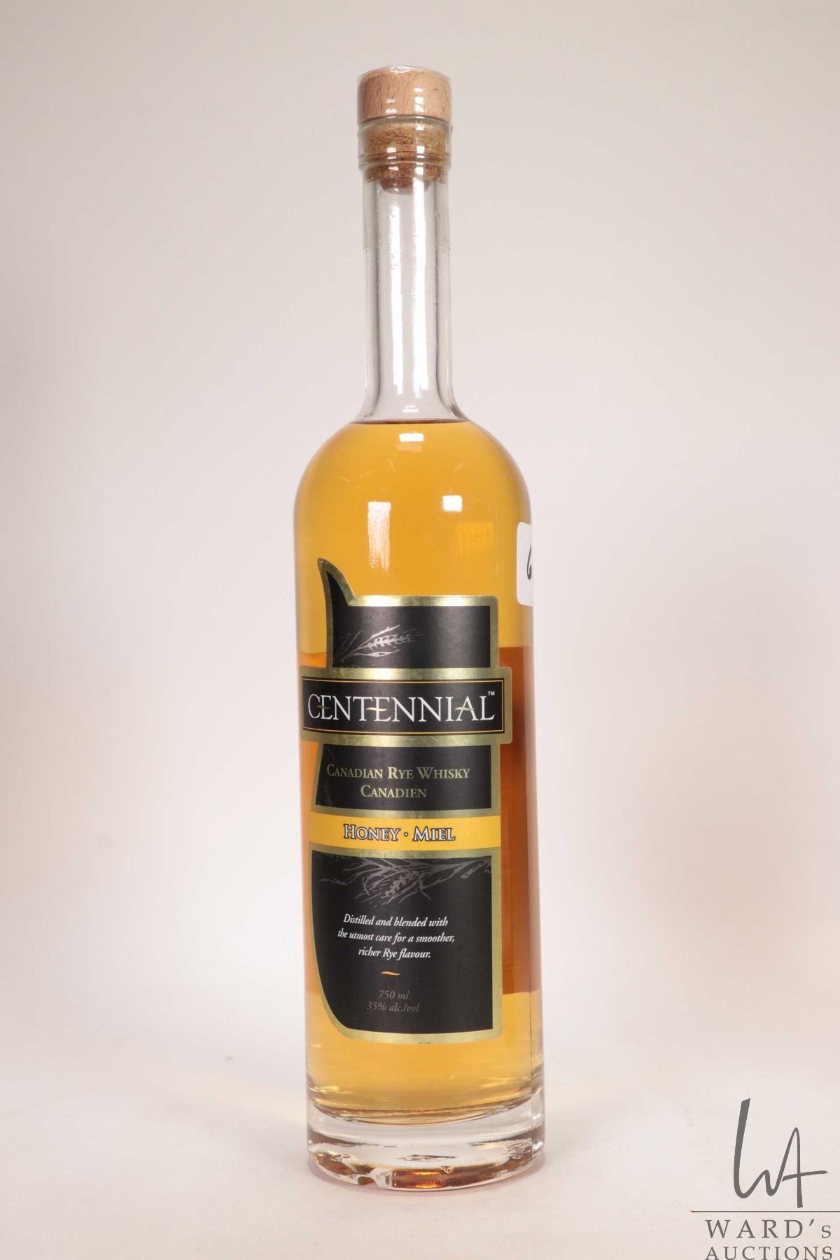 Centennial / Honey Flavoured Canadian Rye Whisky / 750ml / 35% ABV Note: Alcohol cannot be insured by any courier in Canada. Local pick up is recommended. Canadian bidders only