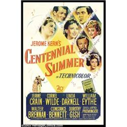 Centennial Summer (20th Century Fox, 1946). One Sheet (27" X 41"). Otto Preminger directed this romantic musical, set in Philadephia during the 1876 centennial celebration. Jerome Kern composed the score, and co-wrote several of the film's songs including "Up With the Lark," "The Right Romance," and "All Through the Day." This would be the last film work he would complete prior to his death in 1945. Fine+. Important notice: Heritage usually auctions material at the rate of 200-250 lots per hour. On some occasions eBay Live bid software or the Internet may not be able to keep up with the pace of the auction. We recommend placing a realistic absentee bid now as insurance to avoid disappointment. Occasionally the auctioneer may eliminate or reject an eBay Live bid, and the auctioneer may also reopen a lot after the close of the eBay live bidding (usually because we missed an audience bid), and may reject your bid even if it shows you as the winning bidder. By bidding via eBay Live, you agree that Heritage may award the lot to another bidder at its sole discretion under the circumstances described above or any other reasonable circumstances. Also please note that all Heritage lots purchased through eBay Live carry a 20% Buyer's Premium. Please make sure you read the Terms and Conditions before you bid.