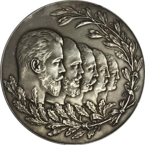 <B>Centennial of the Ministry of the Interior silver medal 1902,</B></I> Conjoined busts of five emperors right/Imperial eagle within circular legend, Smirnov-1251, 72 mm, XF-AU with minor rim bump.<BR><BR><b>Shipping:</b> Coin/Currency (<a target="_blank" href="http://www.heritageauctions.com/common/shipping.php">view shipping information</a>)