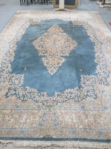 Light blue background. Approx. 9' 9" x 14'. Property of a Lady, UN Plaza, New York. (4034) Some areas of loss.