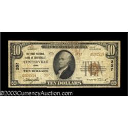 <TABLE cellSpacing=0 cellPadding=0 width="100%" bgColor=#000000 border=0><TBODY> <TR><TD width="100%"><TABLE cellSpacing=1 cellPadding=3 width="100%" border=0><TBODY><TR><TD width="100%" bgColor=#79735c><FONT face=arial color=#ffffff size=3><B>Description</B> </FONT></TD></TR><TR><TD width="100%" bgColor=#ffffff><FONT face=arial size=2><B>Centerville, IA</B></I> - $10 1929 Ty. 2 <B>The First NB</B></I> Ch. # 337<BR>Somewhat the more common of this small town's two issuers, but still not an easy bank to obtain. Interestingly, the title spells the town "Centreville," but the city designation uses the spelling "Centerville." <B>Fine.</B></I> (250-450 ) </FONT></TD></TR></TBODY></TABLE></TD></TR></TBODY></TABLE><BR><TABLE cellSpacing=0 cellPadding=0 width="100%" bgColor=#000000 border=0><TBODY><TR> Important notice: Heritage usually auctions material at the rate of 200-250 lots per hour. On some occasions eBay Live bid software or the Internet may not be able to keep up with the pace of the auction. We recommend placing a realistic absentee bid now as insurance to avoid disappointment. Occasionally the auctioneer may eliminate or reject an eBay Live bid, and the auctioneer may also reopen a lot after the close of the eBay live bidding (usually because we missed an audience bid), and may reject your bid even if it shows you as the winning bidder. By bidding via eBay Live, you agree that Heritage may award the lot to another bidder at its sole discretion under the circumstances described above or any other reasonable circumstances. Also please note that all Heritage lots purchased through eBay Live carry a 20% Buyer's Premium. Please make sure you read the Terms and Conditions before you bid.</TR></TBODY></TABLE>