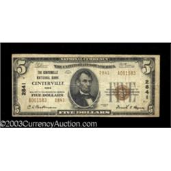 <TABLE cellSpacing=0 cellPadding=0 width="100%" bgColor=#000000 border=0><TBODY> <TR><TD width="100%"><TABLE cellSpacing=1 cellPadding=3 width="100%" border=0><TBODY><TR><TD width="100%" bgColor=#79735c><FONT face=arial color=#ffffff size=3><B>Description</B> </FONT></TD></TR><TR><TD width="100%" bgColor=#ffffff><FONT face=arial size=2><B>Centerville, IA</B></I> - $5 1929 Ty. 2 <B>The Centerville NB</B></I> Ch. # 2841<BR>A nice <B>Fine-Very Fine</B></I> Type 2 example from this scarce bank. (400-600 ) </FONT></TD></TR></TBODY></TABLE></TD></TR></TBODY></TABLE><BR><TABLE cellSpacing=0 cellPadding=0 width="100%" bgColor=#000000 border=0><TBODY><TR> Important notice: Heritage usually auctions material at the rate of 200-250 lots per hour. On some occasions eBay Live bid software or the Internet may not be able to keep up with the pace of the auction. We recommend placing a realistic absentee bid now as insurance to avoid disappointment. Occasionally the auctioneer may eliminate or reject an eBay Live bid, and the auctioneer may also reopen a lot after the close of the eBay live bidding (usually because we missed an audience bid), and may reject your bid even if it shows you as the winning bidder. By bidding via eBay Live, you agree that Heritage may award the lot to another bidder at its sole discretion under the circumstances described above or any other reasonable circumstances. Also please note that all Heritage lots purchased through eBay Live carry a 20% Buyer's Premium. Please make sure you read the Terms and Conditions before you bid.</TR></TBODY></TABLE>