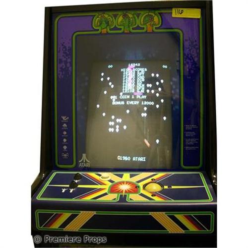 Shooter-Atari-1980-The player controls a gun that can only move in the bottom fifth of the screen. The object is to shoot a centipede that works its way down to the player area through a field of mushrooms. Other attacking enemies are fleas, spiders, and scorpions. Great condition. (SPA3349)