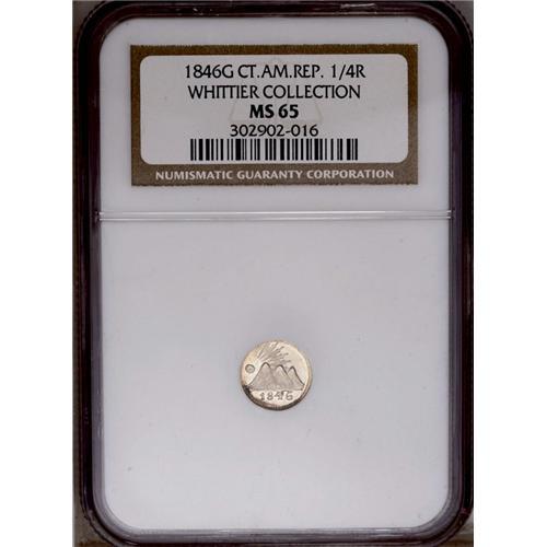 Central American Republic 1/4 Real 1846G, KM1, MS65 NGC Central American Republic 1/4 Real 1846G,