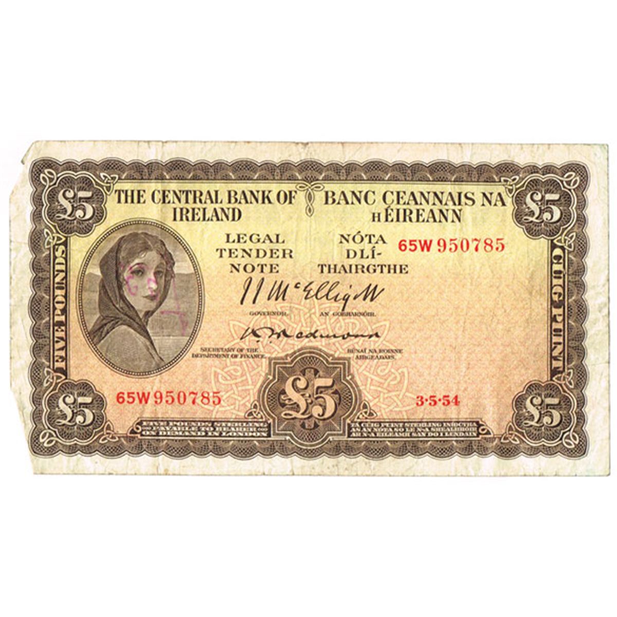 Central Bank Lady Lavery Five Pounds collection 1954-1975