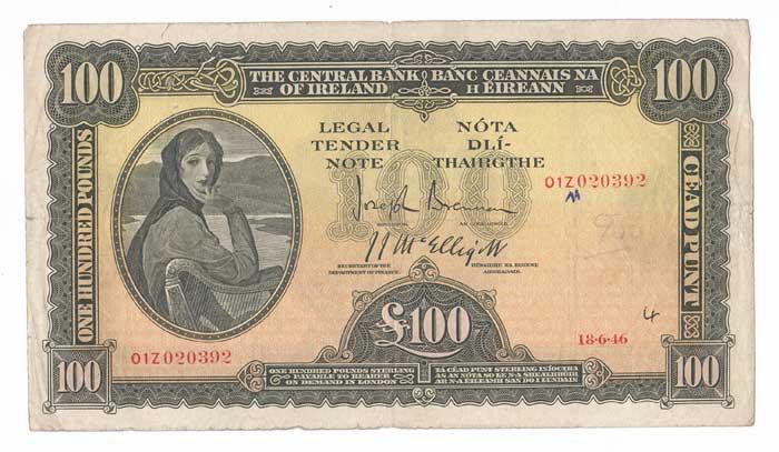 Central Bank. Lady Lavery. Set. Ten Shillings to One Hundred Pounds. mixed dates