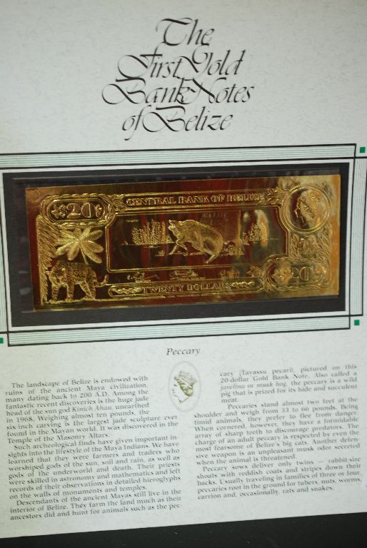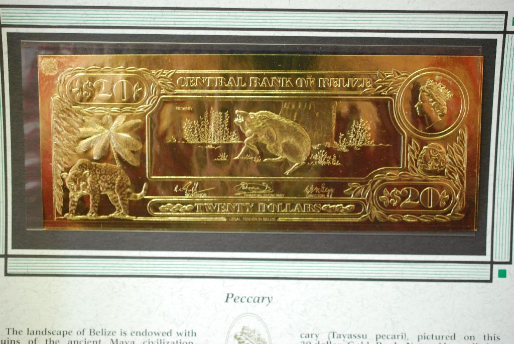 Central Bank Of Belize $20 Foreign Bank Note "Peccary"; The First Gold Bank Notes Of Belize; EST. $5-10