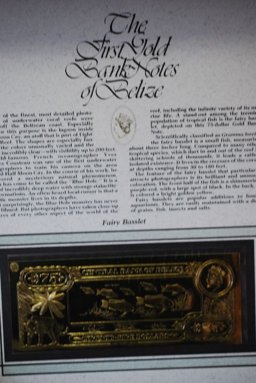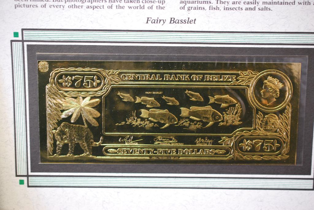 Central Bank Of Belize $75 Foreign Bank Note; "Fairy Basslet"; The First Gold Bank Notes Of Belize; EST. $5-10