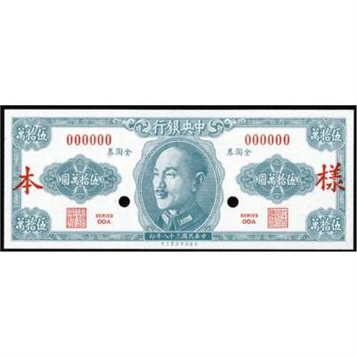 <style type="text/css"> body, td, th { font-family: Arial, Helvetica, sans-serif; font-size: 12px; color: #482424; margin: 0px; padding: 0px; } #header { background-image: url(http://www.bowersandmerena.com/ebay/images/template_v3_01.gif); clear: both; background-color: #590303; border-top-width: 2px; border-top-style: solid; border-top-color: #B38C4F; } #header #header_wrapper { height: 75px; clear: both; width: 800px; margin-right: auto; margin-left: auto; background-image: url(http://www.bowersandmerena.com/ebay/images/template_v3_03.gif); background-repeat: no-repeat; background-position: right; color: #F3EDCC; } #header #header_wrapper #header_logo { float: left; height: 75px; width: 444px; background-image: url(http://www.bowersandmerena.com/ebay/images/template_v3_02.gif); background-repeat: no-repeat; font-size: 10px; text-transform: capitalize; color: #B38C4F; } #header #header_wrapper #header_right { float: left; height: 75px; width: 356px; text-align: right; } #header #header_wrapper #header_right #headerLoginBtn { margin-bottom: 30px; } #header #header_wrapper #header_right input#txtSearch { color: #B49056; border: 1px solid #B49056; width: 175px; padding-top: 3px; padding-right: 3px; padding-bottom: 4px; padding-left: 3px; } #nav { height: 37px; background-image: url(http://www.bowersandmerena.com/ebay/images/template_v3_05.gif); clear: both; } #nav #nav_wrapper { height: 35px; width: 800px; margin-right: auto; margin-left: auto; border-left-width: 1px; border-left-style: solid; border-left-color: #B38C4F; } #nav #nav_wrapper a { padding-right: 15px; padding-left: 15px; border-right-width: 1px; border-right-style: solid; border-right-color: #B38C4F; height: 25px; padding-top: 10px; display: block; float: left; text-decoration: none; font-weight: bold; color: #5D0303; } #nav #nav_wrapper a:hover { color: #B38C4F; } #nav #nav_wrapper #search { float: right; padding-top: 7px; } #nav #nav_wrapper #search #txtSearch { font-family: Arial, Helvetica, sans-serif; font-size: 10px; text-transform: uppercase; color: #D2AE75; border: 1px solid #B38C4F; padding: 3px; } #content_bgd { background-image: url(http://www.bowersandmerena.com/ebay/images/template_v3_09.gif); background-repeat: repeat-y; background-position: center; padding-top: 15px; padding-bottom: 15px; background-color: #FBFBDB; } #content_wrapper { clear: both; height: auto; width: 800px; margin-right: auto; margin-left: auto; } .LotDetailWhite { line-height:normal; font-size:13px; font-family: arial,helvetica,sans-serif; color: White; font-weight: bold; } .LotDetailInformation { line-height:normal; font-size: 13px; font-family: arial,helvetica,sans-serif; } .LotDetailMessage { line-height:normal; font-size: 13px; font-family: arial,helvetica,sans-serif; color: red; } } tr.HeaderAuctionTitle td { color: #000000; font-weight: bold; padding: 2px; background-image: url(http://www.bowersandmerena.com/ebay/images/template_v3_05.gif); background-repeat: repeat-x; border-bottom-width: 1px; border-bottom-style: solid; border-bottom-color: #B38C4F; } table.AuctionSummary a, table.AuctionSummary a:link, table.AuctionSummary a:visited { color: #0000FF; text-decoration: none; } } td.tableHeaderLeft { border-left-width: 1px; border-left-style: solid; border-left-color: #B38C4F; } td.tableHeaderRight { border-right-width: 1px; border-right-style: solid; border-right-color: #B38C4F; } td.tableCellMiddle { border-left-width: 1px; border-left-style: solid; border-left-color: #B38C4F; border-right-width: 1px; border-right-style: solid; border-right-color: #B38C4F; padding: 5px; } tr.footer td { border-top-width: 1px; border-top-style: solid; border-top-color: #B38C4F; } </style> </head> <body> <div id="header"> <div id="header_wrapper"> <div id="header_logo"> </div> <div id="header_right"> </div> </div> </div> <div id="nav"> <div id="nav_wrapper"> <a href="http://www.bowersandmerena.com">Our eBayLive Auctions</a> <a href="#PaymentInfo">Payment Information</a> <a href="#ShippingInfo">Shipping Information</a> <a href="#About">About Bowers and Merena</a> </div> </div> <div id="content_bgd"> <div id="content_wrapper"> <table width="100%" border="0" cellpadding="5" cellspacing="0" class="AuctionSummary"> <tbody> <tr class="HeaderAuctionTitle" style="height: 25px;"> <td align="left" class="tableHeaderLeft" > </td> <td align="center" class="tableHeaderRight"> <span style="font-size: large;">Lot #191. China--Republic. Central Bank of China.</span> </td> </tr> <tr> <td colspan="3" class="tableCellMiddle"> P-Unlisted. 1949. 500,000 Gold Yuan. Series 00-A. Uniface front and back Specimen banknotes in green. Red Specimen overprint, "00000" serial numbers and POC. Backs have red Specimen overprint and serial number. Gem Uncirculated condition. SBNC. Rare banknote.