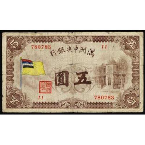 <style type="text/css"> body, td, th { font-family: Arial, Helvetica, sans-serif; font-size: 12px; color: #482424; margin: 0px; padding: 0px; } #header { background-image: url(http://www.bowersandmerena.com/ebay/images/template_v3_01.gif); clear: both; background-color: #590303; border-top-width: 2px; border-top-style: solid; border-top-color: #B38C4F; } #header #header_wrapper { height: 75px; clear: both; width: 800px; margin-right: auto; margin-left: auto; background-image: url(http://www.bowersandmerena.com/ebay/images/template_v3_03.gif); background-repeat: no-repeat; background-position: right; color: #F3EDCC; } #header #header_wrapper #header_logo { float: left; height: 75px; width: 444px; background-image: url(http://www.bowersandmerena.com/ebay/images/template_v3_02.gif); background-repeat: no-repeat; font-size: 10px; text-transform: capitalize; color: #B38C4F; } #header #header_wrapper #header_right { float: left; height: 75px; width: 356px; text-align: right; } #header #header_wrapper #header_right #headerLoginBtn { margin-bottom: 30px; } #header #header_wrapper #header_right input#txtSearch { color: #B49056; border: 1px solid #B49056; width: 175px; padding-top: 3px; padding-right: 3px; padding-bottom: 4px; padding-left: 3px; } #nav { height: 37px; background-image: url(http://www.bowersandmerena.com/ebay/images/template_v3_05.gif); clear: both; } #nav #nav_wrapper { height: 35px; width: 800px; margin-right: auto; margin-left: auto; border-left-width: 1px; border-left-style: solid; border-left-color: #B38C4F; } #nav #nav_wrapper a { padding-right: 15px; padding-left: 15px; border-right-width: 1px; border-right-style: solid; border-right-color: #B38C4F; height: 25px; padding-top: 10px; display: block; float: left; text-decoration: none; font-weight: bold; color: #5D0303; } #nav #nav_wrapper a:hover { color: #B38C4F; } #nav #nav_wrapper #search { float: right; padding-top: 7px; } #nav #nav_wrapper #search #txtSearch { font-family: Arial, Helvetica, sans-serif; font-size: 10px; text-transform: uppercase; color: #D2AE75; border: 1px solid #B38C4F; padding: 3px; } #content_bgd { background-image: url(http://www.bowersandmerena.com/ebay/images/template_v3_09.gif); background-repeat: repeat-y; background-position: center; padding-top: 15px; padding-bottom: 15px; background-color: #FBFBDB; } #content_wrapper { clear: both; height: auto; width: 800px; margin-right: auto; margin-left: auto; } .LotDetailWhite { line-height:normal; font-size:13px; font-family: arial,helvetica,sans-serif; color: White; font-weight: bold; } .LotDetailInformation { line-height:normal; font-size: 13px; font-family: arial,helvetica,sans-serif; } .LotDetailMessage { line-height:normal; font-size: 13px; font-family: arial,helvetica,sans-serif; color: red; } } tr.HeaderAuctionTitle td { color: #000000; font-weight: bold; padding: 2px; background-image: url(http://www.bowersandmerena.com/ebay/images/template_v3_05.gif); background-repeat: repeat-x; border-bottom-width: 1px; border-bottom-style: solid; border-bottom-color: #B38C4F; } table.AuctionSummary a, table.AuctionSummary a:link, table.AuctionSummary a:visited { color: #0000FF; text-decoration: none; } } td.tableHeaderLeft { border-left-width: 1px; border-left-style: solid; border-left-color: #B38C4F; } td.tableHeaderRight { border-right-width: 1px; border-right-style: solid; border-right-color: #B38C4F; } td.tableCellMiddle { border-left-width: 1px; border-left-style: solid; border-left-color: #B38C4F; border-right-width: 1px; border-right-style: solid; border-right-color: #B38C4F; padding: 5px; } tr.footer td { border-top-width: 1px; border-top-style: solid; border-top-color: #B38C4F; } </style> </head> <body> <div id="header"> <div id="header_wrapper"> <div id="header_logo"> </div> <div id="header_right"> </div> </div> </div> <div id="nav"> <div id="nav_wrapper"> <a href="http://www.bowersandmerena.com">Our eBayLive Auctions</a> <a href="#PaymentInfo">Payment Information</a> <a href="#ShippingInfo">Shipping Information</a> <a href="#About">About Bowers and Merena</a> </div> </div> <div id="content_bgd"> <div id="content_wrapper"> <table width="100%" border="0" cellpadding="5" cellspacing="0" class="AuctionSummary"> <tbody> <tr class="HeaderAuctionTitle" style="height: 25px;"> <td align="left" class="tableHeaderLeft" > </td> <td align="center" class="tableHeaderRight"> <span style="font-size: large;">Lot #421. Japanese Puppet Banks--Manchukuo. Central Bank of Manchukuo, 1932-33 ND Issue.</span> </td> </tr> <tr> <td colspan="3" class="tableCellMiddle"> ND (1933). 5 Yuan, P-J126a., VG+ condition with 2 small internal wear spots at folds through the note.