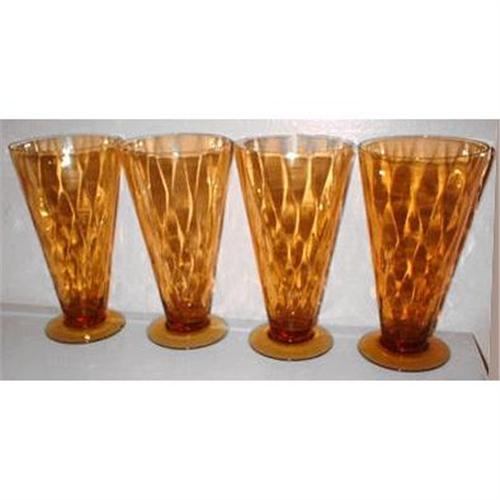 This lovely old set of FOUR amber Depression glass footed tumblers hold 11oz and measure about 6" tall x 3 1/2" across the rim. Produced by the Central Glass Co., circa 1920-1930s, in their diamond optic pattern - CGLHARP Line #43. They are in excellent condition.