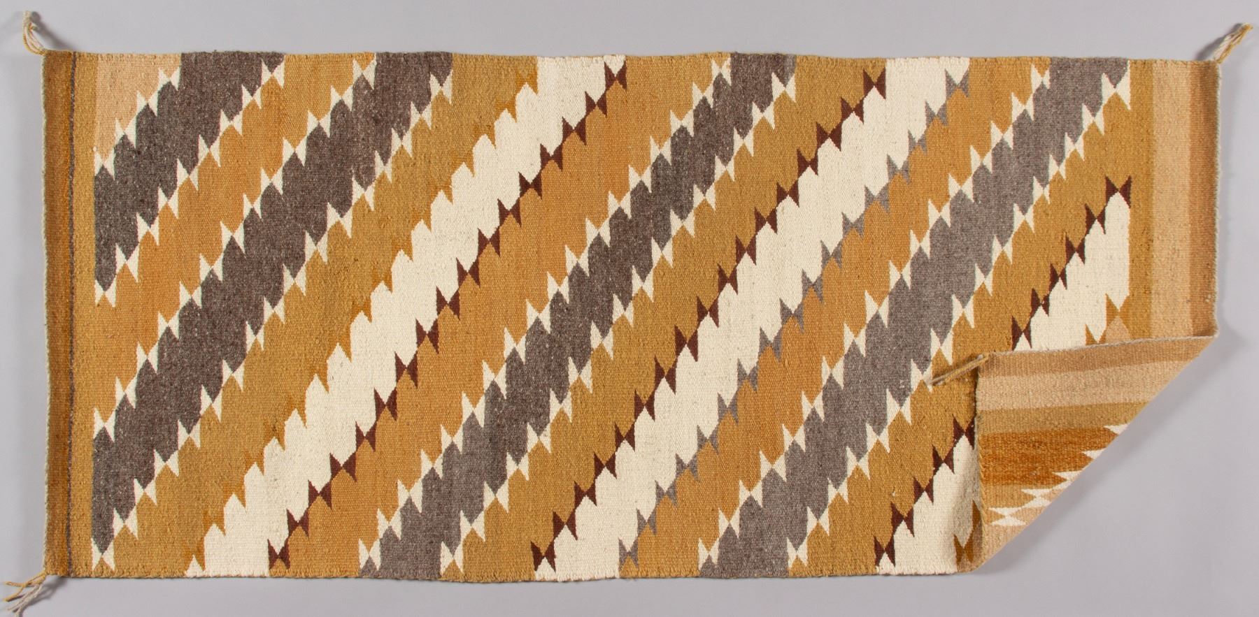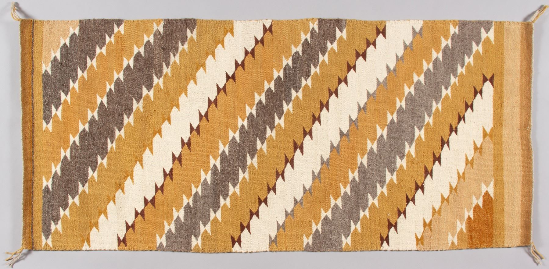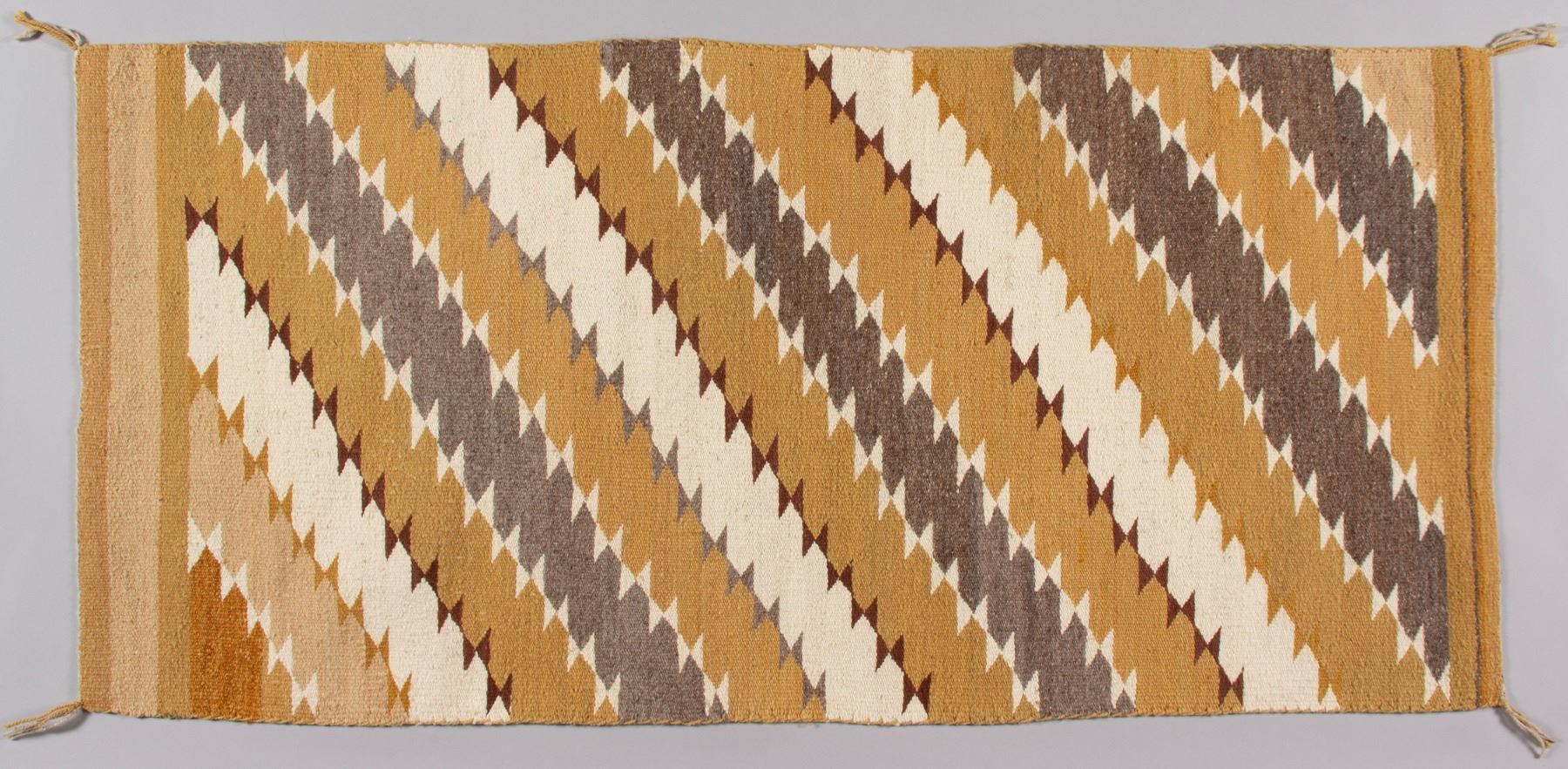 Central Reservation Handwoven Navajo Rug, Diagonal Hourglass Grid Pattern, Vegital Dyes, c. Mid-20th