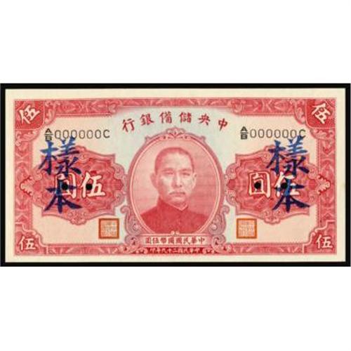 <style type="text/css"> body, td, th { font-family: Arial, Helvetica, sans-serif; font-size: 12px; color: #482424; margin: 0px; padding: 0px; } #header { background-image: url(http://www.bowersandmerena.com/ebay/images/template_v3_01.gif); clear: both; background-color: #590303; border-top-width: 2px; border-top-style: solid; border-top-color: #B38C4F; } #header #header_wrapper { height: 75px; clear: both; width: 800px; margin-right: auto; margin-left: auto; background-image: url(http://www.bowersandmerena.com/ebay/images/template_v3_03.gif); background-repeat: no-repeat; background-position: right; color: #F3EDCC; } #header #header_wrapper #header_logo { float: left; height: 75px; width: 444px; background-image: url(http://www.bowersandmerena.com/ebay/images/template_v3_02.gif); background-repeat: no-repeat; font-size: 10px; text-transform: capitalize; color: #B38C4F; } #header #header_wrapper #header_right { float: left; height: 75px; width: 356px; text-align: right; } #header #header_wrapper #header_right #headerLoginBtn { margin-bottom: 30px; } #header #header_wrapper #header_right input#txtSearch { color: #B49056; border: 1px solid #B49056; width: 175px; padding-top: 3px; padding-right: 3px; padding-bottom: 4px; padding-left: 3px; } #nav { height: 37px; background-image: url(http://www.bowersandmerena.com/ebay/images/template_v3_05.gif); clear: both; } #nav #nav_wrapper { height: 35px; width: 800px; margin-right: auto; margin-left: auto; border-left-width: 1px; border-left-style: solid; border-left-color: #B38C4F; } #nav #nav_wrapper a { padding-right: 15px; padding-left: 15px; border-right-width: 1px; border-right-style: solid; border-right-color: #B38C4F; height: 25px; padding-top: 10px; display: block; float: left; text-decoration: none; font-weight: bold; color: #5D0303; } #nav #nav_wrapper a:hover { color: #B38C4F; } #nav #nav_wrapper #search { float: right; padding-top: 7px; } #nav #nav_wrapper #search #txtSearch { font-family: Arial, Helvetica, sans-serif; font-size: 10px; text-transform: uppercase; color: #D2AE75; border: 1px solid #B38C4F; padding: 3px; } #content_bgd { background-image: url(http://www.bowersandmerena.com/ebay/images/template_v3_09.gif); background-repeat: repeat-y; background-position: center; padding-top: 15px; padding-bottom: 15px; background-color: #FBFBDB; } #content_wrapper { clear: both; height: auto; width: 800px; margin-right: auto; margin-left: auto; } .LotDetailWhite { line-height:normal; font-size:13px; font-family: arial,helvetica,sans-serif; color: White; font-weight: bold; } .LotDetailInformation { line-height:normal; font-size: 13px; font-family: arial,helvetica,sans-serif; } .LotDetailMessage { line-height:normal; font-size: 13px; font-family: arial,helvetica,sans-serif; color: red; } } tr.HeaderAuctionTitle td { color: #000000; font-weight: bold; padding: 2px; background-image: url(http://www.bowersandmerena.com/ebay/images/template_v3_05.gif); background-repeat: repeat-x; border-bottom-width: 1px; border-bottom-style: solid; border-bottom-color: #B38C4F; } table.AuctionSummary a, table.AuctionSummary a:link, table.AuctionSummary a:visited { color: #0000FF; text-decoration: none; } } td.tableHeaderLeft { border-left-width: 1px; border-left-style: solid; border-left-color: #B38C4F; } td.tableHeaderRight { border-right-width: 1px; border-right-style: solid; border-right-color: #B38C4F; } td.tableCellMiddle { border-left-width: 1px; border-left-style: solid; border-left-color: #B38C4F; border-right-width: 1px; border-right-style: solid; border-right-color: #B38C4F; padding: 5px; } tr.footer td { border-top-width: 1px; border-top-style: solid; border-top-color: #B38C4F; } </style> </head> <body> <div id="header"> <div id="header_wrapper"> <div id="header_logo"> </div> <div id="header_right"> </div> </div> </div> <div id="nav"> <div id="nav_wrapper"> <a href="http://www.bowersandmerena.com">Our eBayLive Auctions</a> <a href="#PaymentInfo">Payment Information</a> <a href="#ShippingInfo">Shipping Information</a> <a href="#About">About Bowers and Merena</a> </div> </div> <div id="content_bgd"> <div id="content_wrapper"> <table width="100%" border="0" cellpadding="5" cellspacing="0" class="AuctionSummary"> <tbody> <tr class="HeaderAuctionTitle" style="height: 25px;"> <td align="left" class="tableHeaderLeft" > </td> <td align="center" class="tableHeaderRight"> <span style="font-size: large;">Lot #351. Japanese Puppet Banks. Central Reserve Bank of China, 1940 Issue.</span> </td> </tr> <tr> <td colspan="3" class="tableCellMiddle"> Specimen note, 1940 Issue. 5 Yuan, P-J10s2, Yang Pen on face, POCs and "Specimen" in italics on back, Choice Unc.
