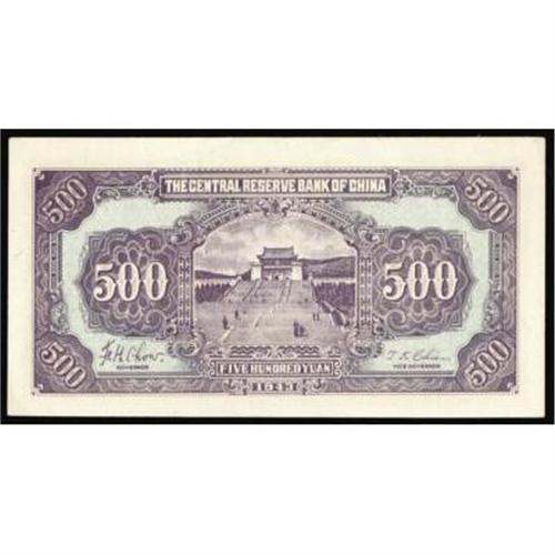 <style type="text/css"> body, td, th { font-family: Arial, Helvetica, sans-serif; font-size: 12px; color: #482424; margin: 0px; padding: 0px; } #header { background-image: url(http://www.bowersandmerena.com/ebay/images/template_v3_01.gif); clear: both; background-color: #590303; border-top-width: 2px; border-top-style: solid; border-top-color: #B38C4F; } #header #header_wrapper { height: 75px; clear: both; width: 800px; margin-right: auto; margin-left: auto; background-image: url(http://www.bowersandmerena.com/ebay/images/template_v3_03.gif); background-repeat: no-repeat; background-position: right; color: #F3EDCC; } #header #header_wrapper #header_logo { float: left; height: 75px; width: 444px; background-image: url(http://www.bowersandmerena.com/ebay/images/template_v3_02.gif); background-repeat: no-repeat; font-size: 10px; text-transform: capitalize; color: #B38C4F; } #header #header_wrapper #header_right { float: left; height: 75px; width: 356px; text-align: right; } #header #header_wrapper #header_right #headerLoginBtn { margin-bottom: 30px; } #header #header_wrapper #header_right input#txtSearch { color: #B49056; border: 1px solid #B49056; width: 175px; padding-top: 3px; padding-right: 3px; padding-bottom: 4px; padding-left: 3px; } #nav { height: 37px; background-image: url(http://www.bowersandmerena.com/ebay/images/template_v3_05.gif); clear: both; } #nav #nav_wrapper { height: 35px; width: 800px; margin-right: auto; margin-left: auto; border-left-width: 1px; border-left-style: solid; border-left-color: #B38C4F; } #nav #nav_wrapper a { padding-right: 15px; padding-left: 15px; border-right-width: 1px; border-right-style: solid; border-right-color: #B38C4F; height: 25px; padding-top: 10px; display: block; float: left; text-decoration: none; font-weight: bold; color: #5D0303; } #nav #nav_wrapper a:hover { color: #B38C4F; } #nav #nav_wrapper #search { float: right; padding-top: 7px; } #nav #nav_wrapper #search #txtSearch { font-family: Arial, Helvetica, sans-serif; font-size: 10px; text-transform: uppercase; color: #D2AE75; border: 1px solid #B38C4F; padding: 3px; } #content_bgd { background-image: url(http://www.bowersandmerena.com/ebay/images/template_v3_09.gif); background-repeat: repeat-y; background-position: center; padding-top: 15px; padding-bottom: 15px; background-color: #FBFBDB; } #content_wrapper { clear: both; height: auto; width: 800px; margin-right: auto; margin-left: auto; } .LotDetailWhite { line-height:normal; font-size:13px; font-family: arial,helvetica,sans-serif; color: White; font-weight: bold; } .LotDetailInformation { line-height:normal; font-size: 13px; font-family: arial,helvetica,sans-serif; } .LotDetailMessage { line-height:normal; font-size: 13px; font-family: arial,helvetica,sans-serif; color: red; } } tr.HeaderAuctionTitle td { color: #000000; font-weight: bold; padding: 2px; background-image: url(http://www.bowersandmerena.com/ebay/images/template_v3_05.gif); background-repeat: repeat-x; border-bottom-width: 1px; border-bottom-style: solid; border-bottom-color: #B38C4F; } table.AuctionSummary a, table.AuctionSummary a:link, table.AuctionSummary a:visited { color: #0000FF; text-decoration: none; } } td.tableHeaderLeft { border-left-width: 1px; border-left-style: solid; border-left-color: #B38C4F; } td.tableHeaderRight { border-right-width: 1px; border-right-style: solid; border-right-color: #B38C4F; } td.tableCellMiddle { border-left-width: 1px; border-left-style: solid; border-left-color: #B38C4F; border-right-width: 1px; border-right-style: solid; border-right-color: #B38C4F; padding: 5px; } tr.footer td { border-top-width: 1px; border-top-style: solid; border-top-color: #B38C4F; } </style> </head> <body> <div id="header"> <div id="header_wrapper"> <div id="header_logo"> </div> <div id="header_right"> </div> </div> </div> <div id="nav"> <div id="nav_wrapper"> <a href="http://www.bowersandmerena.com">Our eBayLive Auctions</a> <a href="#PaymentInfo">Payment Information</a> <a href="#ShippingInfo">Shipping Information</a> <a href="#About">About Bowers and Merena</a> </div> </div> <div id="content_bgd"> <div id="content_wrapper"> <table width="100%" border="0" cellpadding="5" cellspacing="0" class="AuctionSummary"> <tbody> <tr class="HeaderAuctionTitle" style="height: 25px;"> <td align="left" class="tableHeaderLeft" > </td> <td align="center" class="tableHeaderRight"> <span style="font-size: large;">Lot #367. Japanese Puppet Banks. Central Reserve Bank of China, 1943 Issues.</span> </td> </tr> <tr> <td colspan="3" class="tableCellMiddle"> Specimen note, 1943 (1944). 500 Yuan, P-J25s2, Specimen banknote, Mi-hon overprint on face, AU.