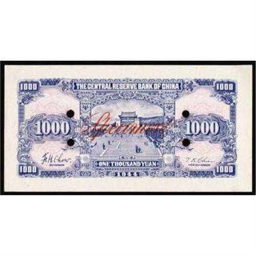 <style type="text/css"> body, td, th { font-family: Arial, Helvetica, sans-serif; font-size: 12px; color: #482424; margin: 0px; padding: 0px; } #header { background-image: url(http://www.bowersandmerena.com/ebay/images/template_v3_01.gif); clear: both; background-color: #590303; border-top-width: 2px; border-top-style: solid; border-top-color: #B38C4F; } #header #header_wrapper { height: 75px; clear: both; width: 800px; margin-right: auto; margin-left: auto; background-image: url(http://www.bowersandmerena.com/ebay/images/template_v3_03.gif); background-repeat: no-repeat; background-position: right; color: #F3EDCC; } #header #header_wrapper #header_logo { float: left; height: 75px; width: 444px; background-image: url(http://www.bowersandmerena.com/ebay/images/template_v3_02.gif); background-repeat: no-repeat; font-size: 10px; text-transform: capitalize; color: #B38C4F; } #header #header_wrapper #header_right { float: left; height: 75px; width: 356px; text-align: right; } #header #header_wrapper #header_right #headerLoginBtn { margin-bottom: 30px; } #header #header_wrapper #header_right input#txtSearch { color: #B49056; border: 1px solid #B49056; width: 175px; padding-top: 3px; padding-right: 3px; padding-bottom: 4px; padding-left: 3px; } #nav { height: 37px; background-image: url(http://www.bowersandmerena.com/ebay/images/template_v3_05.gif); clear: both; } #nav #nav_wrapper { height: 35px; width: 800px; margin-right: auto; margin-left: auto; border-left-width: 1px; border-left-style: solid; border-left-color: #B38C4F; } #nav #nav_wrapper a { padding-right: 15px; padding-left: 15px; border-right-width: 1px; border-right-style: solid; border-right-color: #B38C4F; height: 25px; padding-top: 10px; display: block; float: left; text-decoration: none; font-weight: bold; color: #5D0303; } #nav #nav_wrapper a:hover { color: #B38C4F; } #nav #nav_wrapper #search { float: right; padding-top: 7px; } #nav #nav_wrapper #search #txtSearch { font-family: Arial, Helvetica, sans-serif; font-size: 10px; text-transform: uppercase; color: #D2AE75; border: 1px solid #B38C4F; padding: 3px; } #content_bgd { background-image: url(http://www.bowersandmerena.com/ebay/images/template_v3_09.gif); background-repeat: repeat-y; background-position: center; padding-top: 15px; padding-bottom: 15px; background-color: #FBFBDB; } #content_wrapper { clear: both; height: auto; width: 800px; margin-right: auto; margin-left: auto; } .LotDetailWhite { line-height:normal; font-size:13px; font-family: arial,helvetica,sans-serif; color: White; font-weight: bold; } .LotDetailInformation { line-height:normal; font-size: 13px; font-family: arial,helvetica,sans-serif; } .LotDetailMessage { line-height:normal; font-size: 13px; font-family: arial,helvetica,sans-serif; color: red; } } tr.HeaderAuctionTitle td { color: #000000; font-weight: bold; padding: 2px; background-image: url(http://www.bowersandmerena.com/ebay/images/template_v3_05.gif); background-repeat: repeat-x; border-bottom-width: 1px; border-bottom-style: solid; border-bottom-color: #B38C4F; } table.AuctionSummary a, table.AuctionSummary a:link, table.AuctionSummary a:visited { color: #0000FF; text-decoration: none; } } td.tableHeaderLeft { border-left-width: 1px; border-left-style: solid; border-left-color: #B38C4F; } td.tableHeaderRight { border-right-width: 1px; border-right-style: solid; border-right-color: #B38C4F; } td.tableCellMiddle { border-left-width: 1px; border-left-style: solid; border-left-color: #B38C4F; border-right-width: 1px; border-right-style: solid; border-right-color: #B38C4F; padding: 5px; } tr.footer td { border-top-width: 1px; border-top-style: solid; border-top-color: #B38C4F; } </style> </head> <body> <div id="header"> <div id="header_wrapper"> <div id="header_logo"> </div> <div id="header_right"> </div> </div> </div> <div id="nav"> <div id="nav_wrapper"> <a href="http://www.bowersandmerena.com">Our eBayLive Auctions</a> <a href="#PaymentInfo">Payment Information</a> <a href="#ShippingInfo">Shipping Information</a> <a href="#About">About Bowers and Merena</a> </div> </div> <div id="content_bgd"> <div id="content_wrapper"> <table width="100%" border="0" cellpadding="5" cellspacing="0" class="AuctionSummary"> <tbody> <tr class="HeaderAuctionTitle" style="height: 25px;"> <td align="left" class="tableHeaderLeft" > </td> <td align="center" class="tableHeaderRight"> <span style="font-size: large;">Lot #371. Japanese Puppet Banks. Central Reserve Bank of China, 1944 Issues.</span> </td> </tr> <tr> <td colspan="3" class="tableCellMiddle"> Specimen note, 1944 (1945). 1000 Yuan, P-J32s, Specimen banknote, Yang Pen on face and Specimen on back, POCs, Choice Unc.