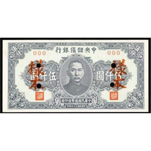 <style type="text/css"> body, td, th { font-family: Arial, Helvetica, sans-serif; font-size: 12px; color: #482424; margin: 0px; padding: 0px; } #header { background-image: url(http://www.bowersandmerena.com/ebay/images/template_v3_01.gif); clear: both; background-color: #590303; border-top-width: 2px; border-top-style: solid; border-top-color: #B38C4F; } #header #header_wrapper { height: 75px; clear: both; width: 800px; margin-right: auto; margin-left: auto; background-image: url(http://www.bowersandmerena.com/ebay/images/template_v3_03.gif); background-repeat: no-repeat; background-position: right; color: #F3EDCC; } #header #header_wrapper #header_logo { float: left; height: 75px; width: 444px; background-image: url(http://www.bowersandmerena.com/ebay/images/template_v3_02.gif); background-repeat: no-repeat; font-size: 10px; text-transform: capitalize; color: #B38C4F; } #header #header_wrapper #header_right { float: left; height: 75px; width: 356px; text-align: right; } #header #header_wrapper #header_right #headerLoginBtn { margin-bottom: 30px; } #header #header_wrapper #header_right input#txtSearch { color: #B49056; border: 1px solid #B49056; width: 175px; padding-top: 3px; padding-right: 3px; padding-bottom: 4px; padding-left: 3px; } #nav { height: 37px; background-image: url(http://www.bowersandmerena.com/ebay/images/template_v3_05.gif); clear: both; } #nav #nav_wrapper { height: 35px; width: 800px; margin-right: auto; margin-left: auto; border-left-width: 1px; border-left-style: solid; border-left-color: #B38C4F; } #nav #nav_wrapper a { padding-right: 15px; padding-left: 15px; border-right-width: 1px; border-right-style: solid; border-right-color: #B38C4F; height: 25px; padding-top: 10px; display: block; float: left; text-decoration: none; font-weight: bold; color: #5D0303; } #nav #nav_wrapper a:hover { color: #B38C4F; } #nav #nav_wrapper #search { float: right; padding-top: 7px; } #nav #nav_wrapper #search #txtSearch { font-family: Arial, Helvetica, sans-serif; font-size: 10px; text-transform: uppercase; color: #D2AE75; border: 1px solid #B38C4F; padding: 3px; } #content_bgd { background-image: url(http://www.bowersandmerena.com/ebay/images/template_v3_09.gif); background-repeat: repeat-y; background-position: center; padding-top: 15px; padding-bottom: 15px; background-color: #FBFBDB; } #content_wrapper { clear: both; height: auto; width: 800px; margin-right: auto; margin-left: auto; } .LotDetailWhite { line-height:normal; font-size:13px; font-family: arial,helvetica,sans-serif; color: White; font-weight: bold; } .LotDetailInformation { line-height:normal; font-size: 13px; font-family: arial,helvetica,sans-serif; } .LotDetailMessage { line-height:normal; font-size: 13px; font-family: arial,helvetica,sans-serif; color: red; } } tr.HeaderAuctionTitle td { color: #000000; font-weight: bold; padding: 2px; background-image: url(http://www.bowersandmerena.com/ebay/images/template_v3_05.gif); background-repeat: repeat-x; border-bottom-width: 1px; border-bottom-style: solid; border-bottom-color: #B38C4F; } table.AuctionSummary a, table.AuctionSummary a:link, table.AuctionSummary a:visited { color: #0000FF; text-decoration: none; } } td.tableHeaderLeft { border-left-width: 1px; border-left-style: solid; border-left-color: #B38C4F; } td.tableHeaderRight { border-right-width: 1px; border-right-style: solid; border-right-color: #B38C4F; } td.tableCellMiddle { border-left-width: 1px; border-left-style: solid; border-left-color: #B38C4F; border-right-width: 1px; border-right-style: solid; border-right-color: #B38C4F; padding: 5px; } tr.footer td { border-top-width: 1px; border-top-style: solid; border-top-color: #B38C4F; } </style> </head> <body> <div id="header"> <div id="header_wrapper"> <div id="header_logo"> </div> <div id="header_right"> </div> </div> </div> <div id="nav"> <div id="nav_wrapper"> <a href="http://www.bowersandmerena.com">Our eBayLive Auctions</a> <a href="#PaymentInfo">Payment Information</a> <a href="#ShippingInfo">Shipping Information</a> <a href="#About">About Bowers and Merena</a> </div> </div> <div id="content_bgd"> <div id="content_wrapper"> <table width="100%" border="0" cellpadding="5" cellspacing="0" class="AuctionSummary"> <tbody> <tr class="HeaderAuctionTitle" style="height: 25px;"> <td align="left" class="tableHeaderLeft" > </td> <td align="center" class="tableHeaderRight"> <span style="font-size: large;">Lot #384. Japanese Puppet Banks. Central Reserve Bank of China, 1945 Issues.</span> </td> </tr> <tr> <td colspan="3" class="tableCellMiddle"> Specimen note, 1945. 5,000 Yuan, P-J41s, Specimen banknote, Yang Pen on face and Specimen on back, POCs, Choice Unc.