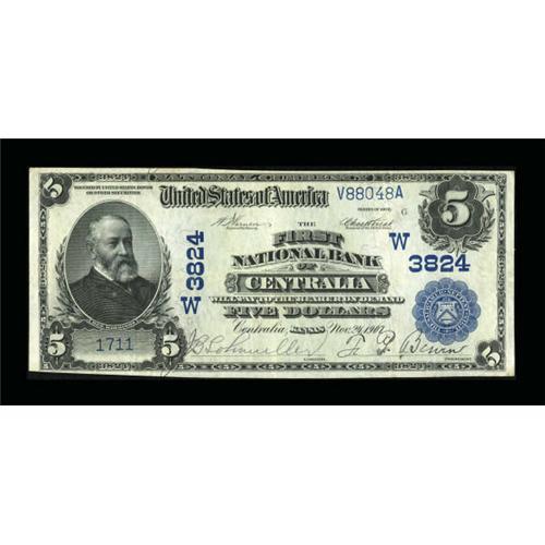 <B>Centralia, KS</B></I> - $5 1902 Date Back Fr. 592 <B>The First NB of Centralia</B></I> Ch. # (W)3824<BR> An attractive pen signed Date Back which is certain to please. <B>Very Fine.</B></I><BR><BR><b>Shipping:</b> Coins & Currency (<a target="_blank" href="http://www.heritageauctions.com/common/shipping.php">view shipping information</a>)