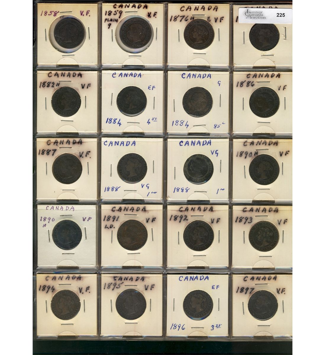 Cents Collection; 1858 to 1920. Includes 1858 and 1907H but know 1859 or 1891 better varieties. 57 coins G to VF.