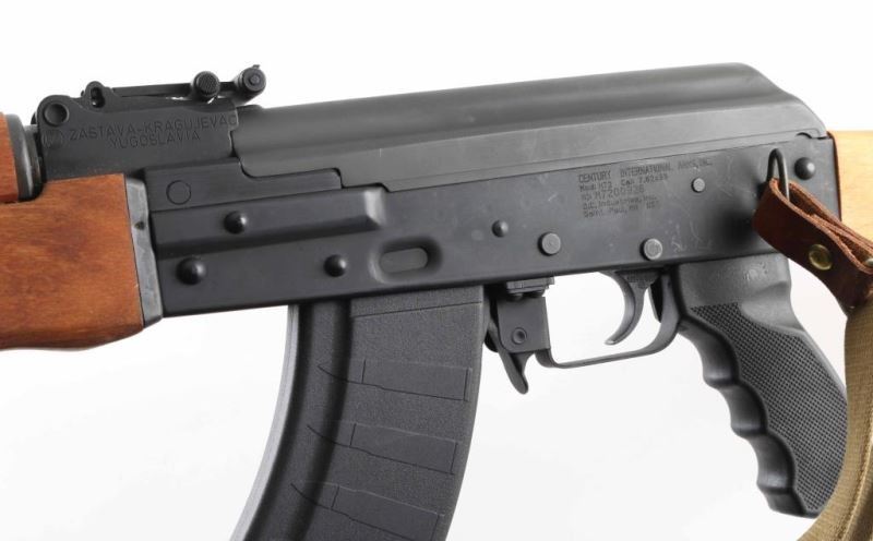 Semiautomatic RPK style rifle built by Century International Arms on a DC Industries receiver, using a mix of US and Yugoslavian parts. Features parkerized finish, wood hand guards & stock, black plastic pistol grip, 20" heavy finned barrel, bulged trunnion, folding bipod, slant muzzle brake, adjustable military type sights, manual safety. Bore is very good condition. Metal surfaces retain 95% parkerized finish with some minor handling marks. Wood is excellent condition. Buttplate sits slightly crooked. Includes very good condition Chinese SKS sling, and (2) polymer magazines (40 rd & 10 rd). Condition is NRA Excellent - like new *** Modern Firearm ***