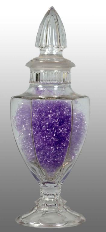 Ground. Chip to inner lip of jar. Top is fine. Jar has no scratches, cracks or cloudiness. General Store Condition (Excellent). Size 15" T.