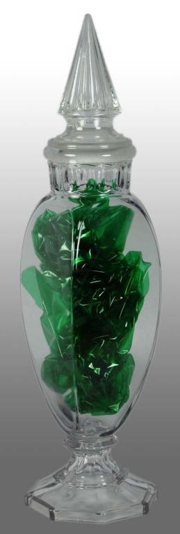 Ground. Jar has no chips or cracks but does have one panel with slight cloudiness along with a few scratches. General Store Condition (Excellent). Size 21" T.