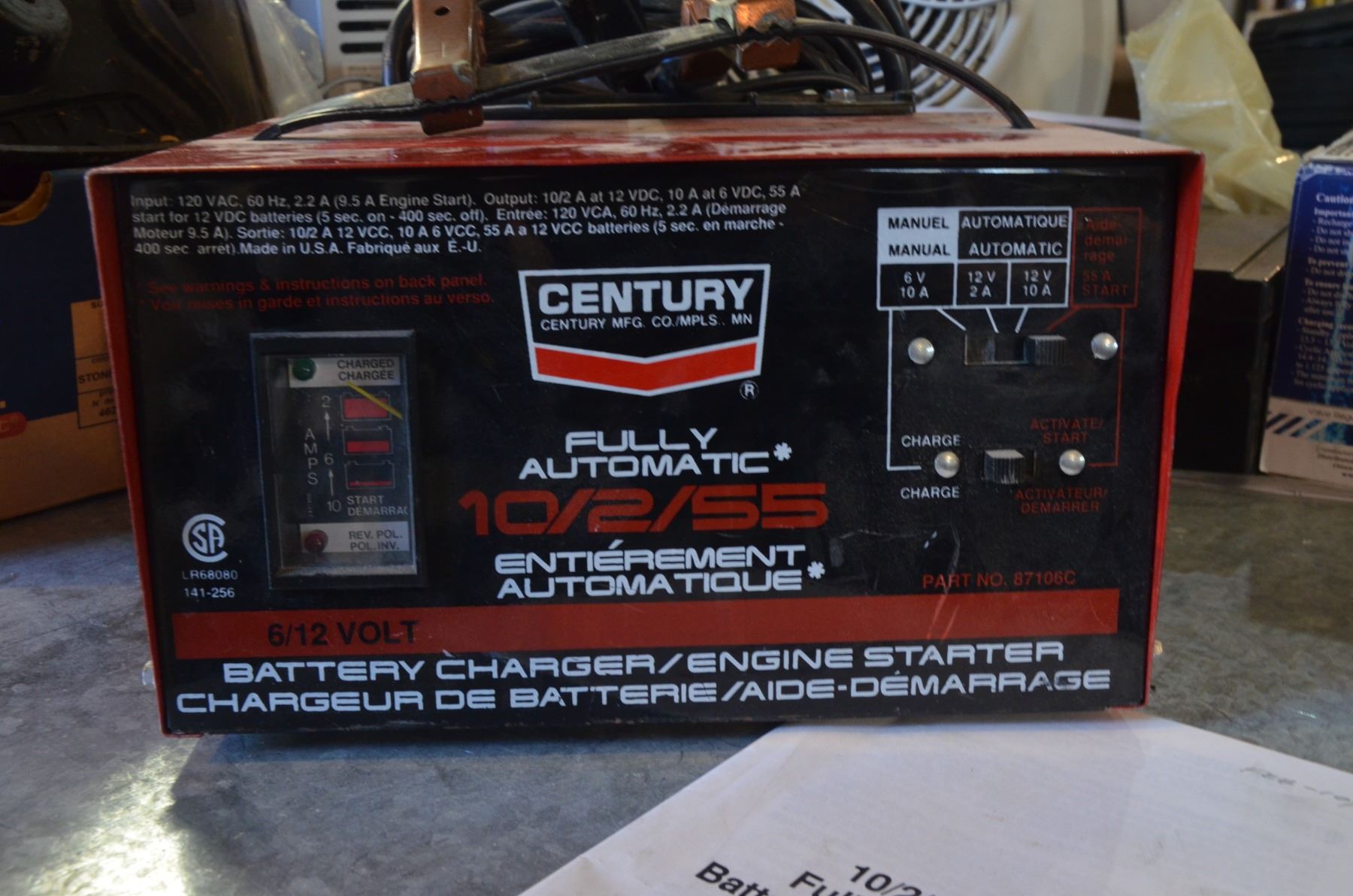 Century Fully Automatic 6/12 Volt Battery Charger w/ Manuel