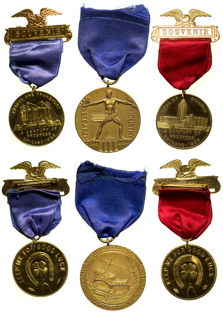 Three pieces: 1) HK463, R2, XF; 2) HK469, R3, BU, hairlines, red ribbon; 3) HK474a, R4, BU, "Souvenir" hanger with blue ribbon. -59165