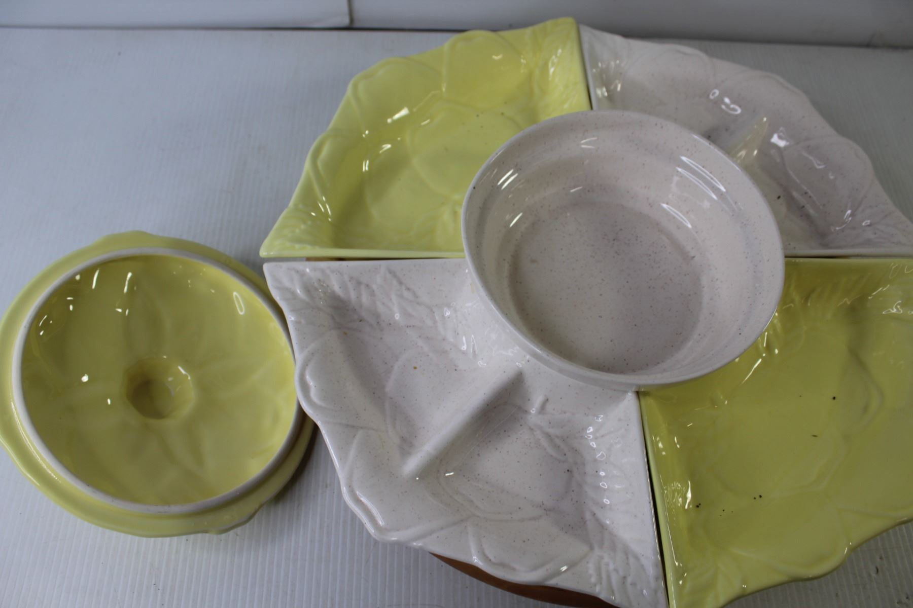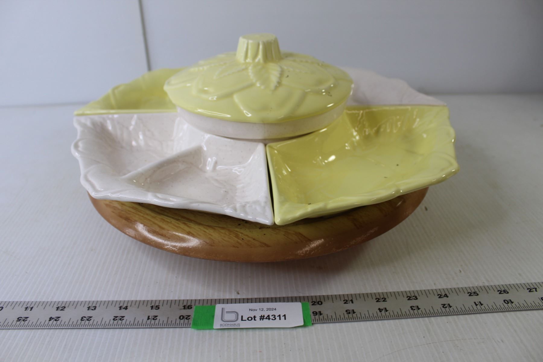 Ceramic 6-piece Serving Platter With Wood Turntable